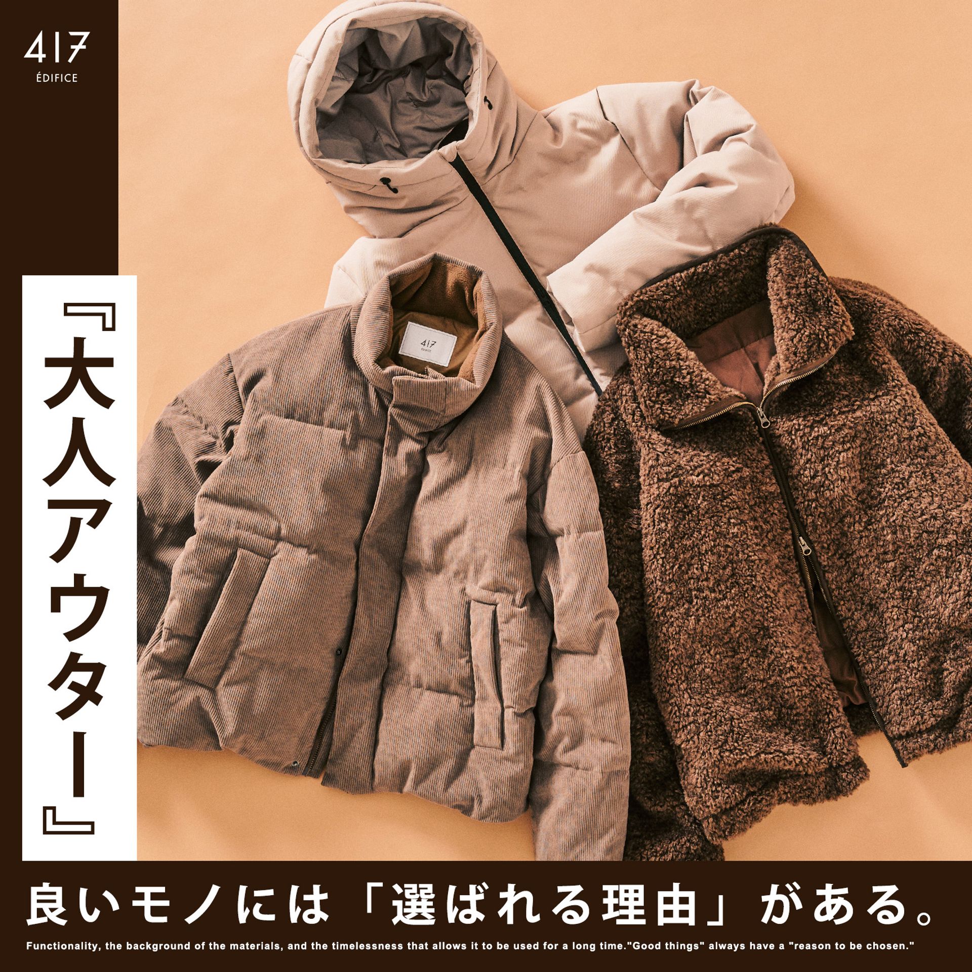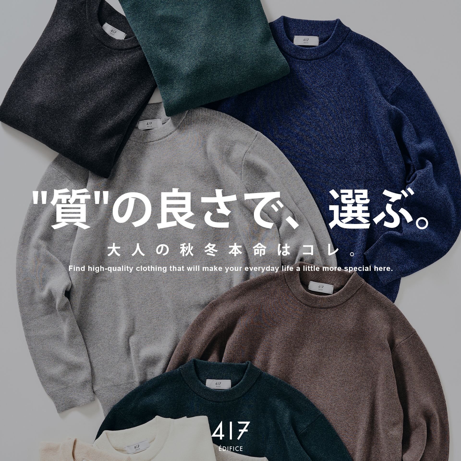 気温が下がるほど、本当に頼れる一着 の価値は大きくなります。417 ÉDIFICEが自信を持っておすすめする20の名品は、暖かさ・着心地・上質さ・そして“毎日着たくなる理由”がしっかり詰まっています。
