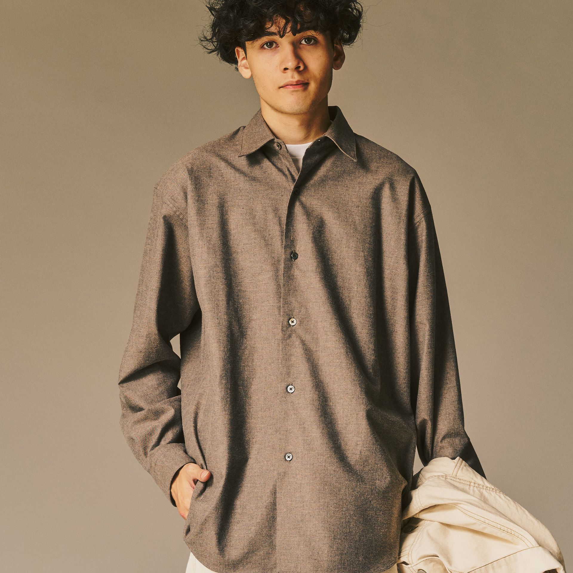 上質フランネルの柔らかな風合いが際立ち、冬のレイヤードを格上げする至高の大人シャツ。
