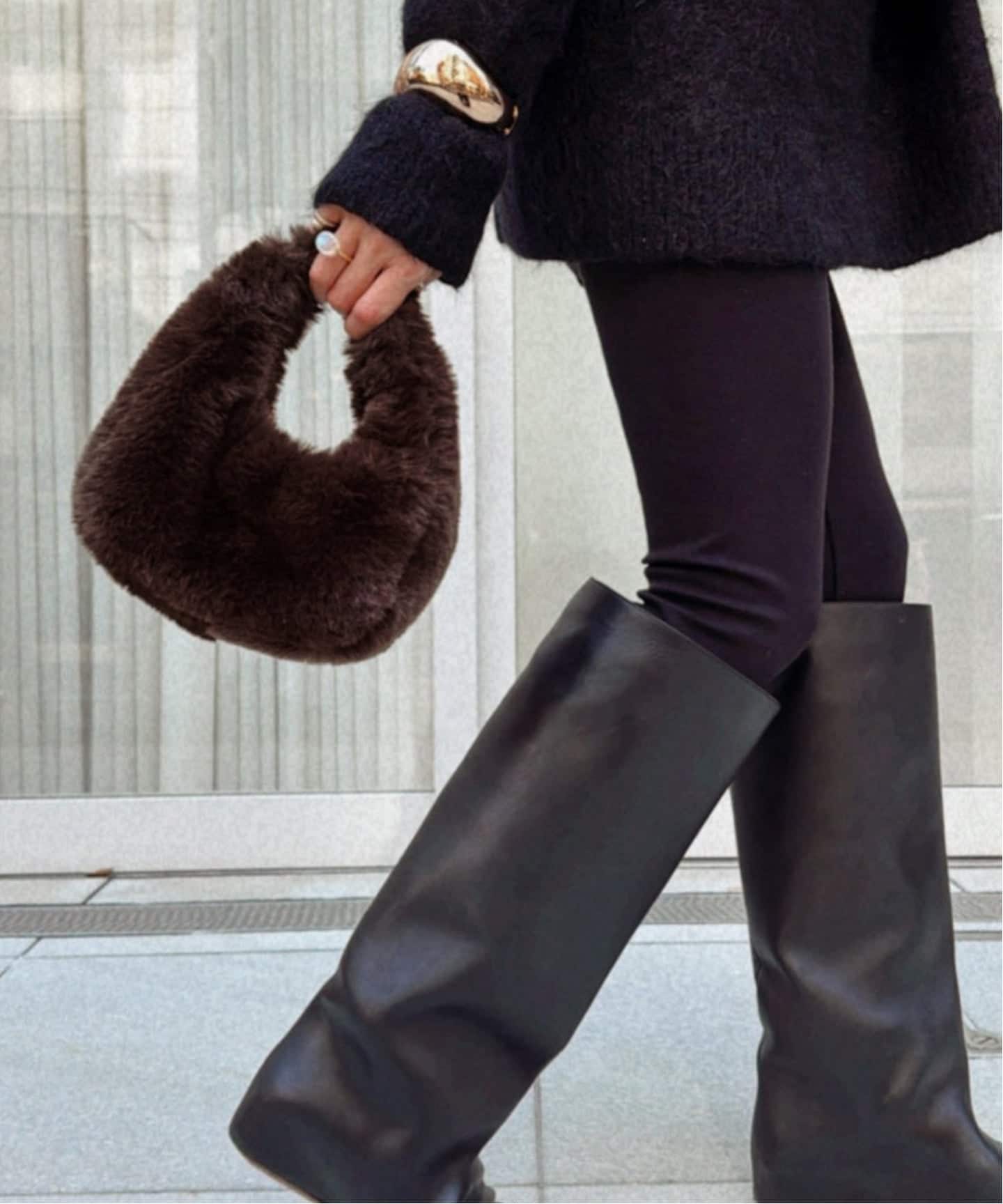 ブラックボトムでシックなスタイルも、冬を盛り上げる着こなし方でおすすめ。