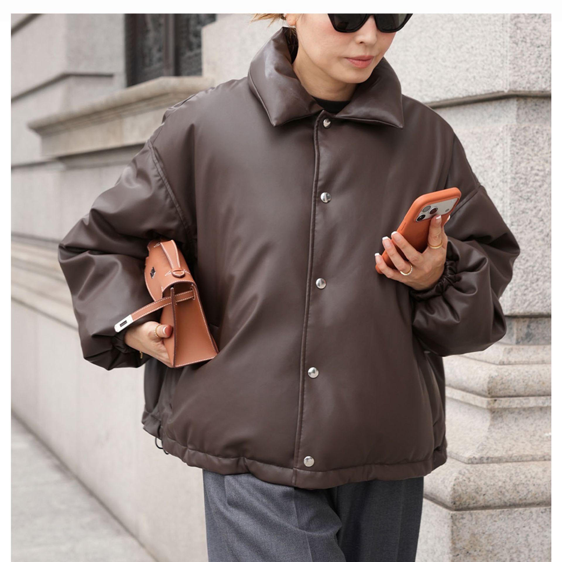 大人気のパファーコートがショート丈&フェイクレザーで登場!