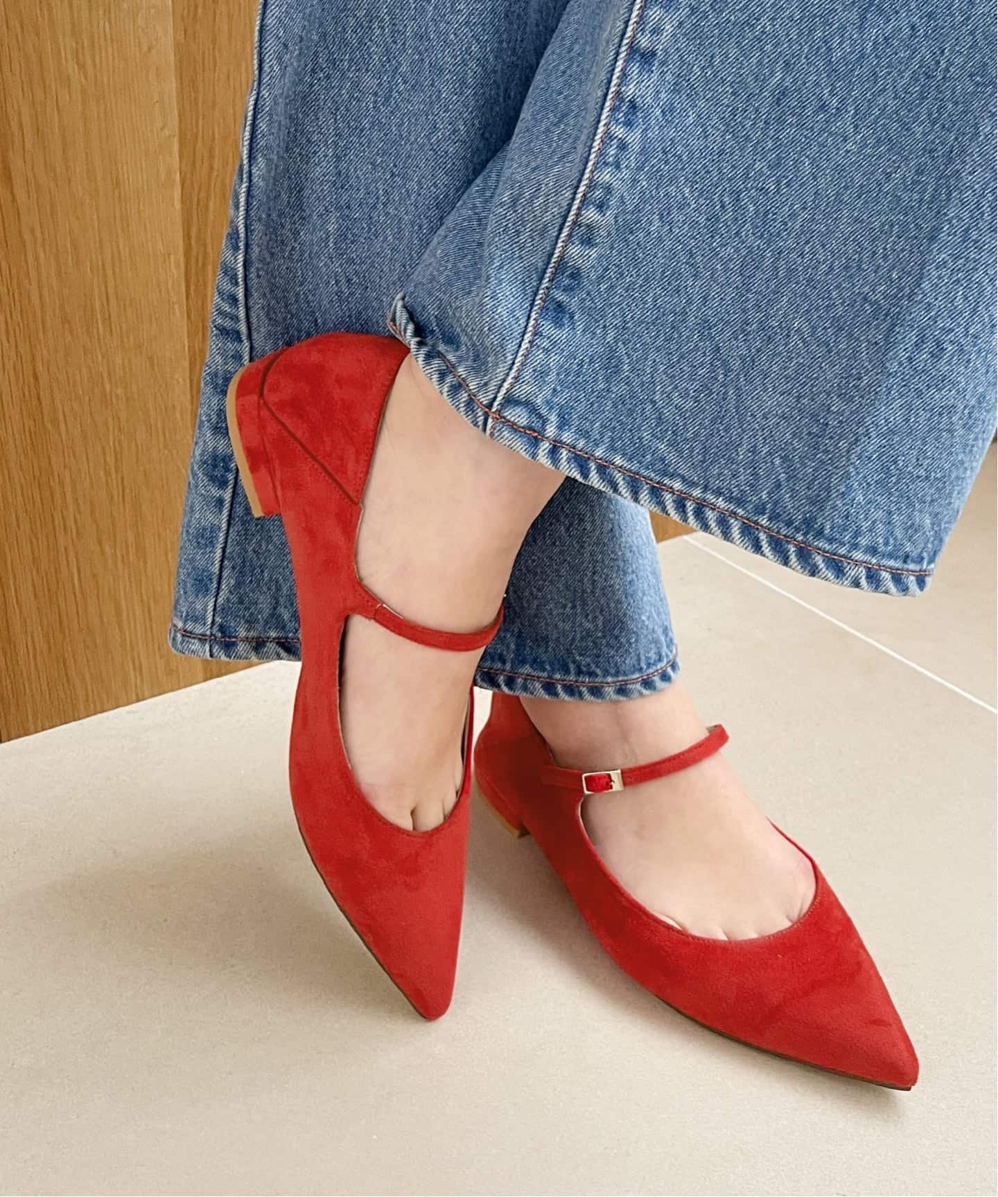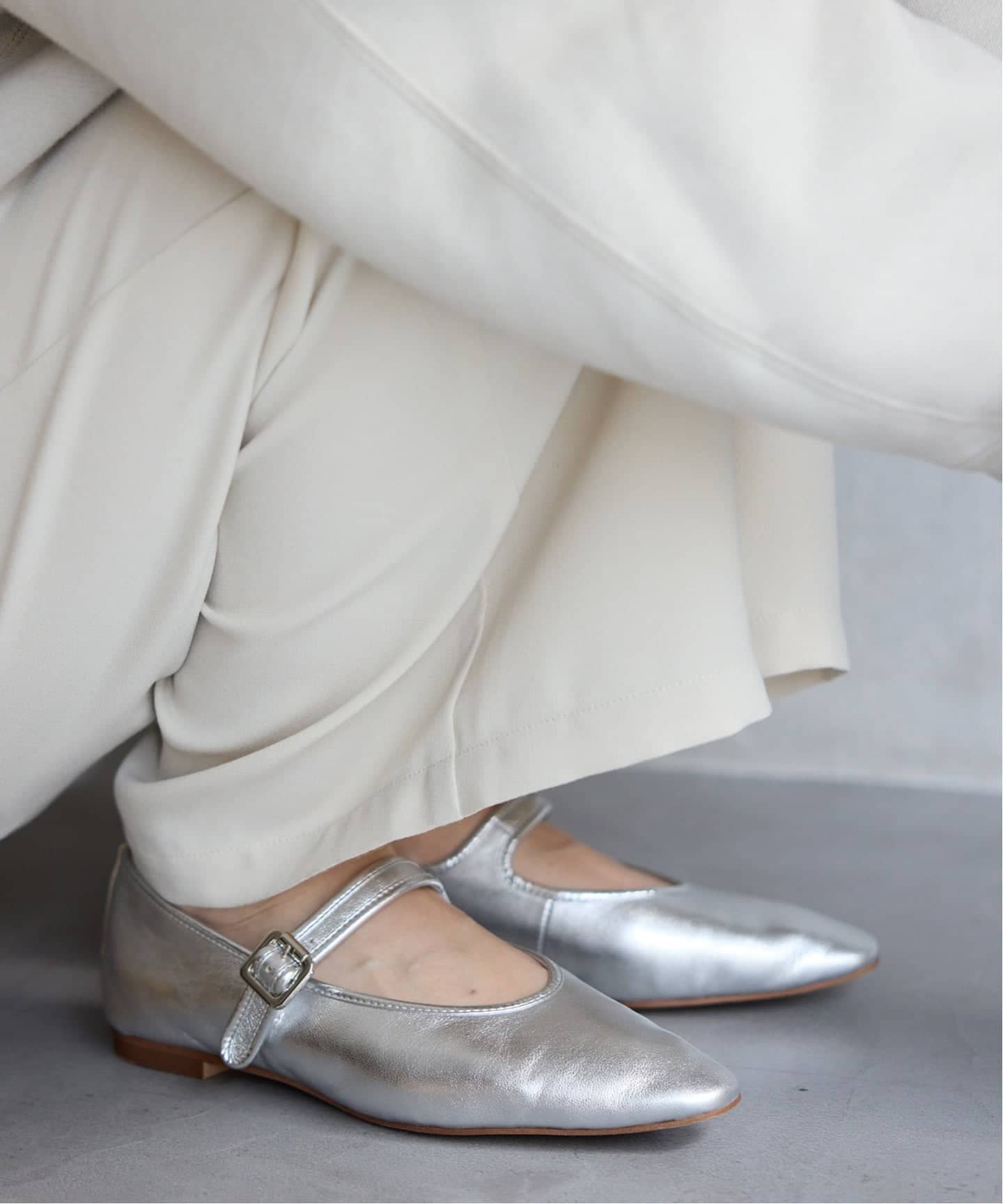 つま先は細めのラウンドシルエット、甲部分はフラットでも足をきれいに見せてくれるUカットにする事で、大人が履けるスッキリとしたシルエットのメリージェーンに。