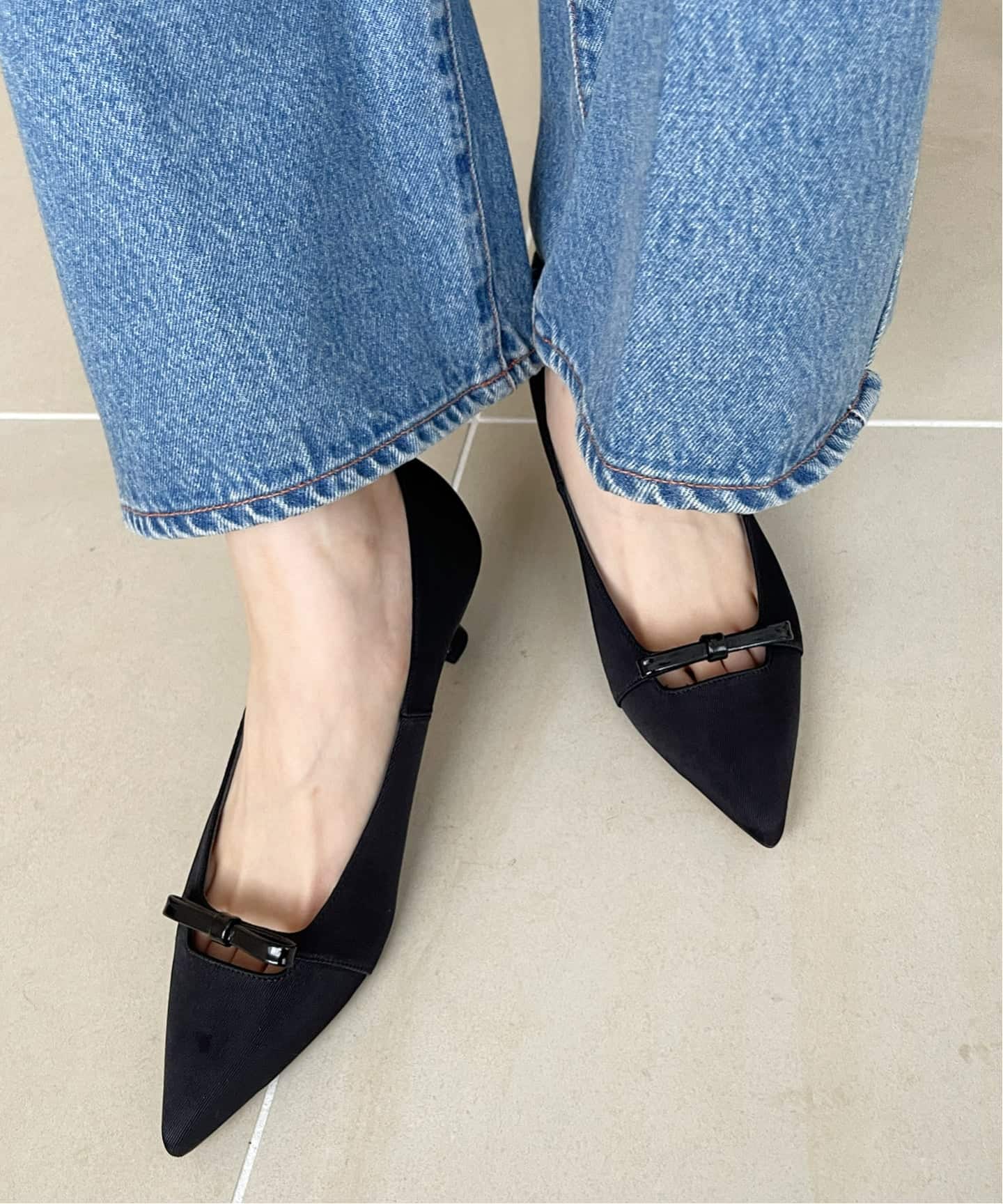 お仕事にも、ヒール派のデイリーパンプスとしても活躍する1足。フロントの細いリボンと、ちらっと素肌が覗く小窓がさりげないポイントです♩