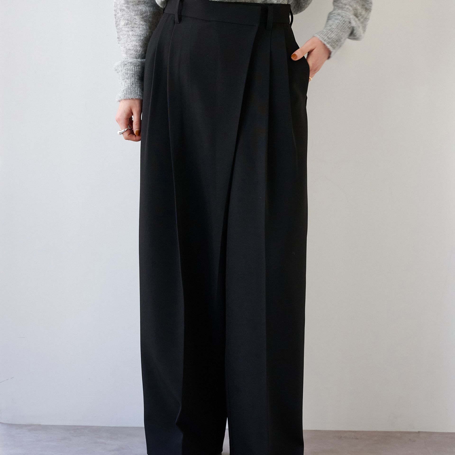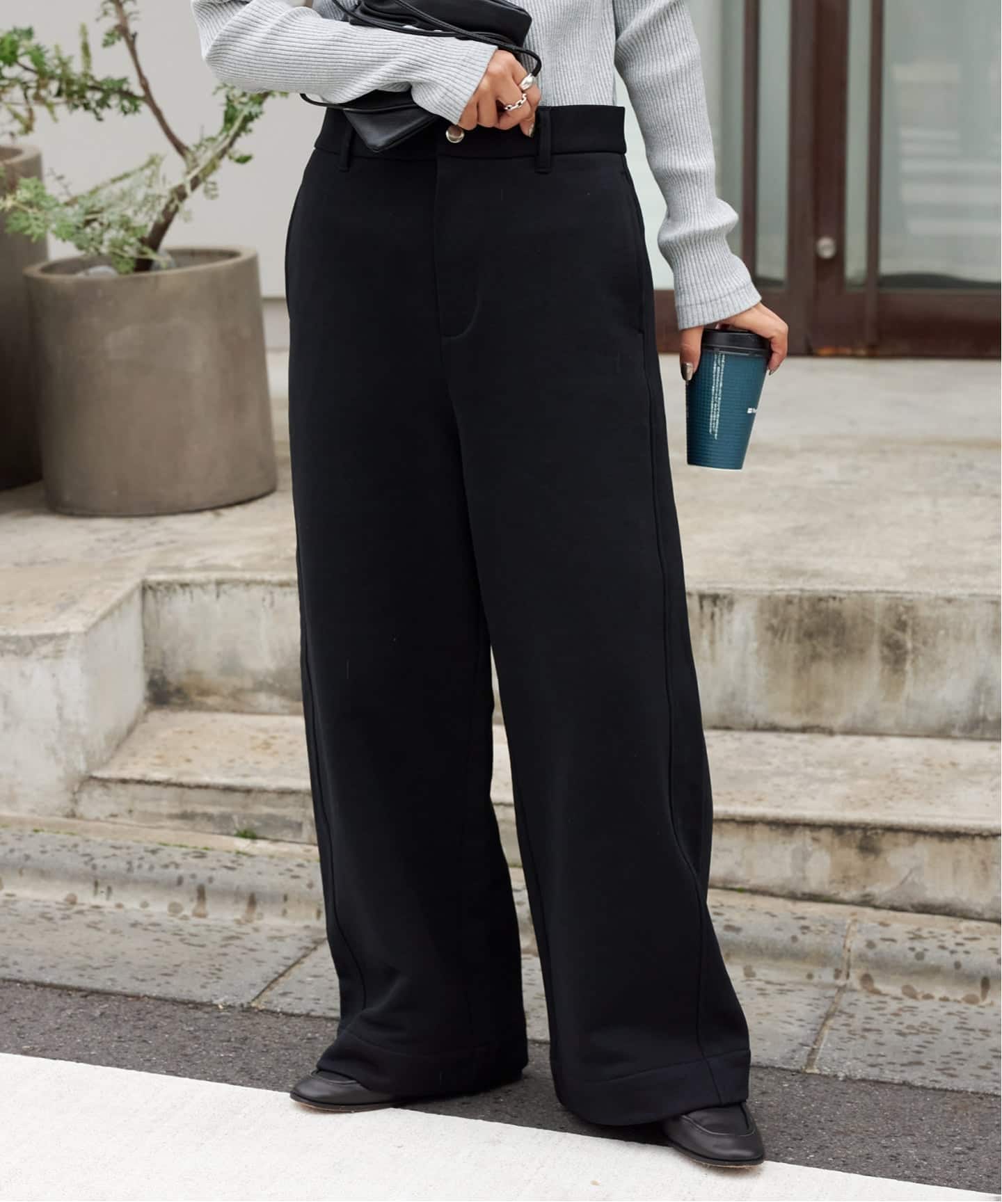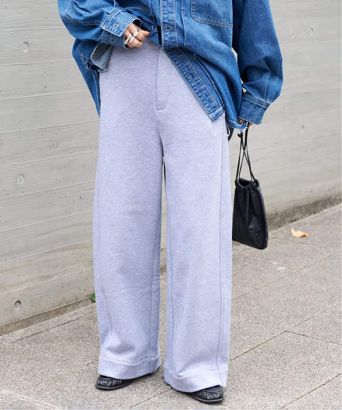 程よいハリのある素材感でスラックスのようなキレイ見えするシルエットが魅力の1着。