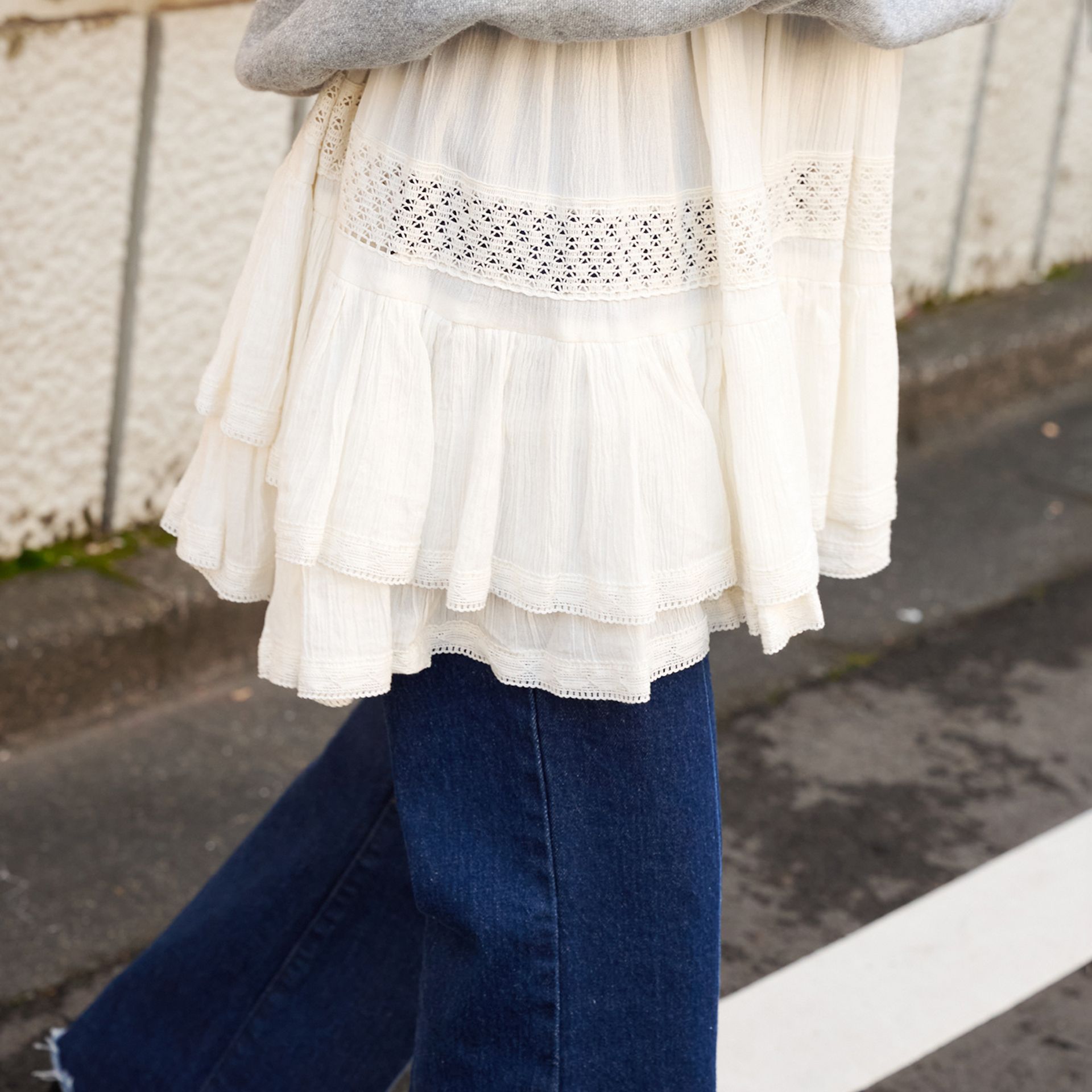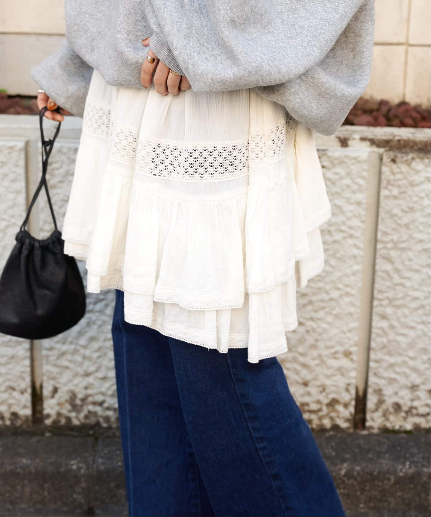 ヴィンテージライクなコットンレース生地でカジュアルに取り入れやすく、着こなしやすいアイテムです。
