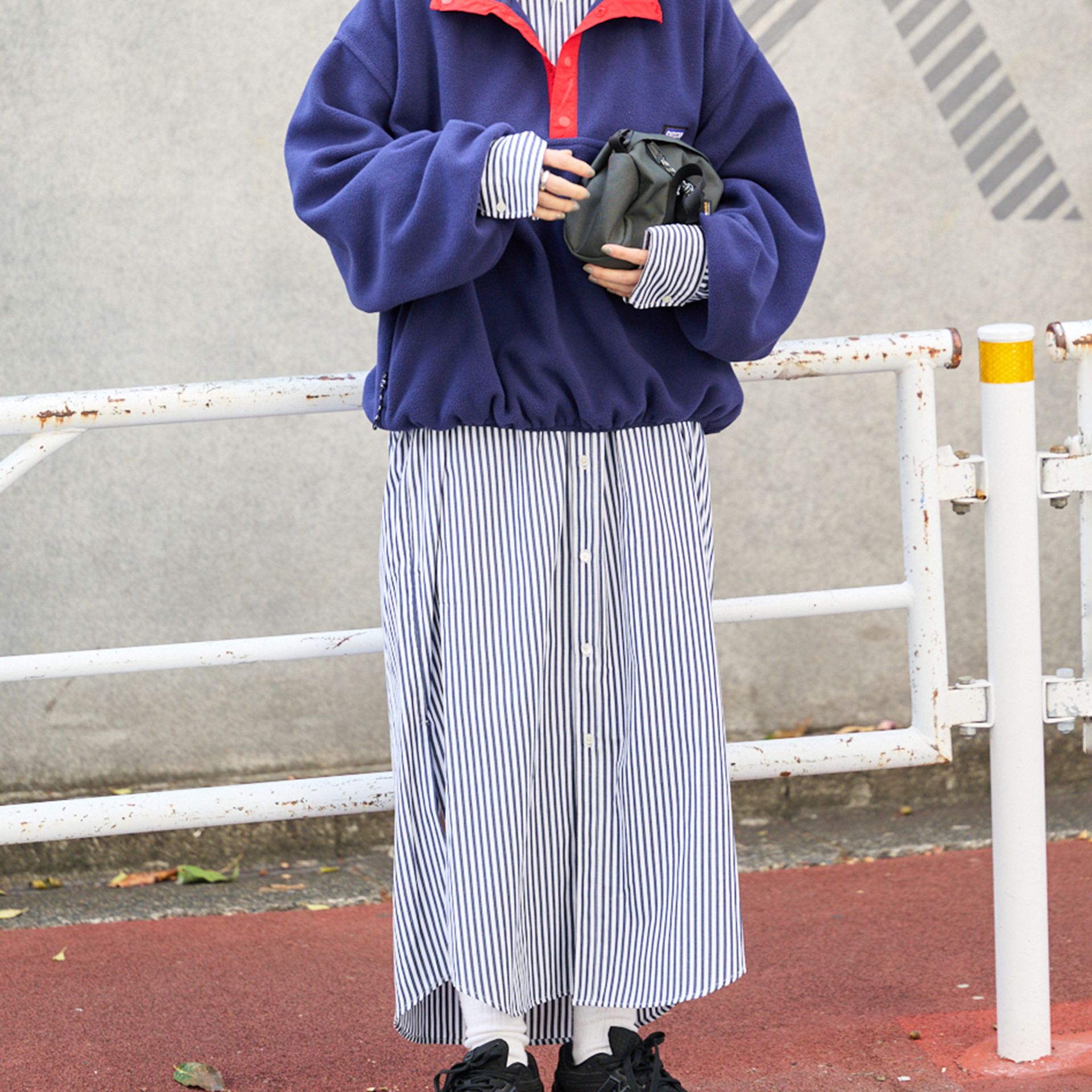 シンプルなシルエットで着こなしやすいシャツワンピースです。