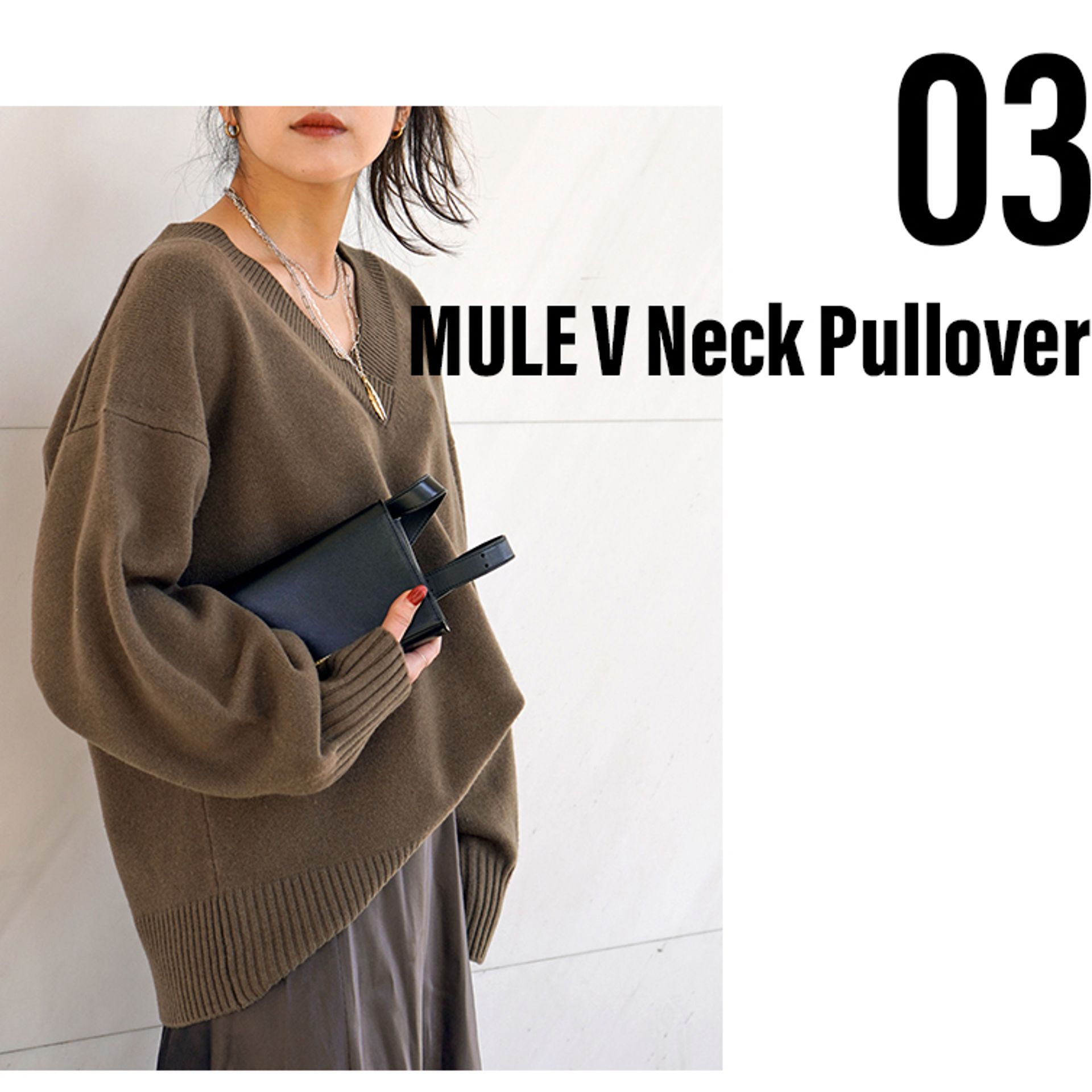 深めのVネックで女性らしい印象で着れるMULE Vネックニット。