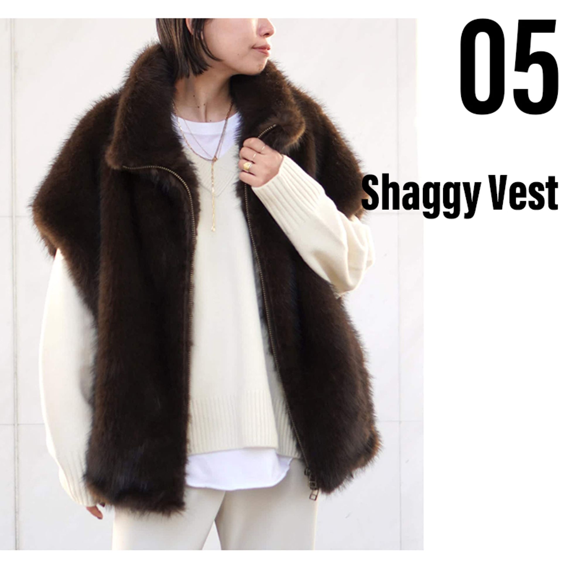 フェイクファーとは思えないほど、滑らかなタッチで触り心地の良いファーベスト。