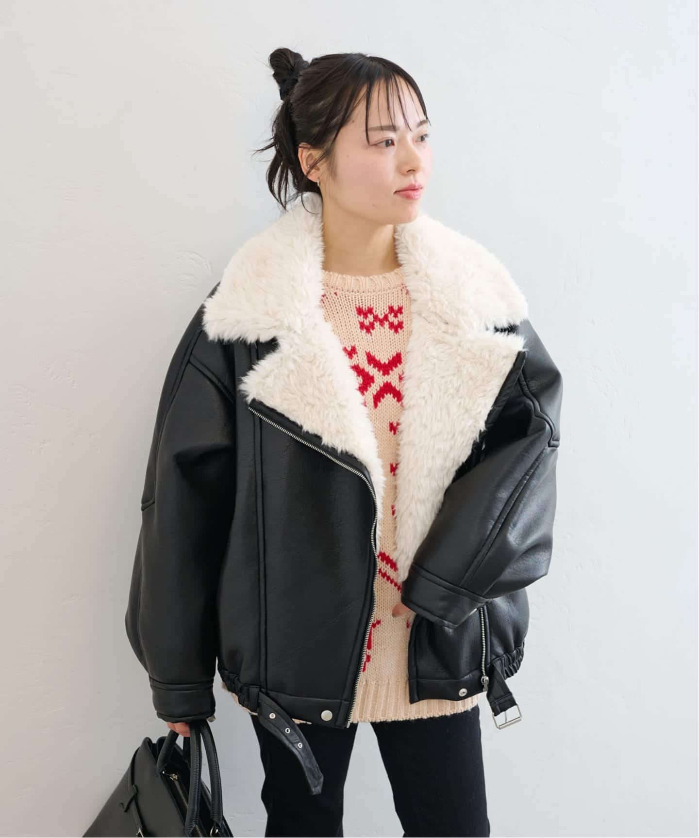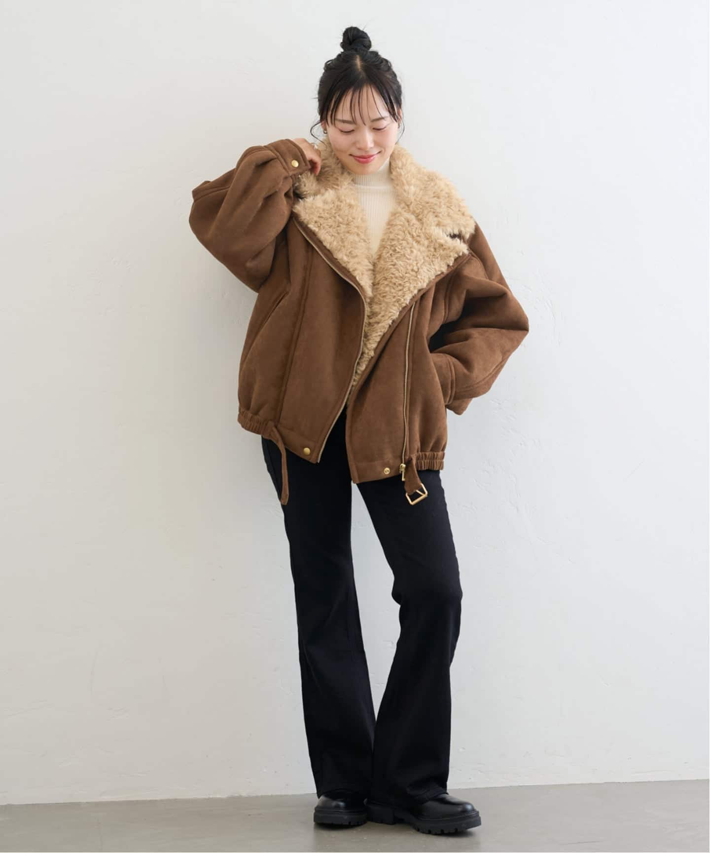 ふんわり質感のフェイクシアリングが体温を逃さず、真冬でも頼れる1枚。