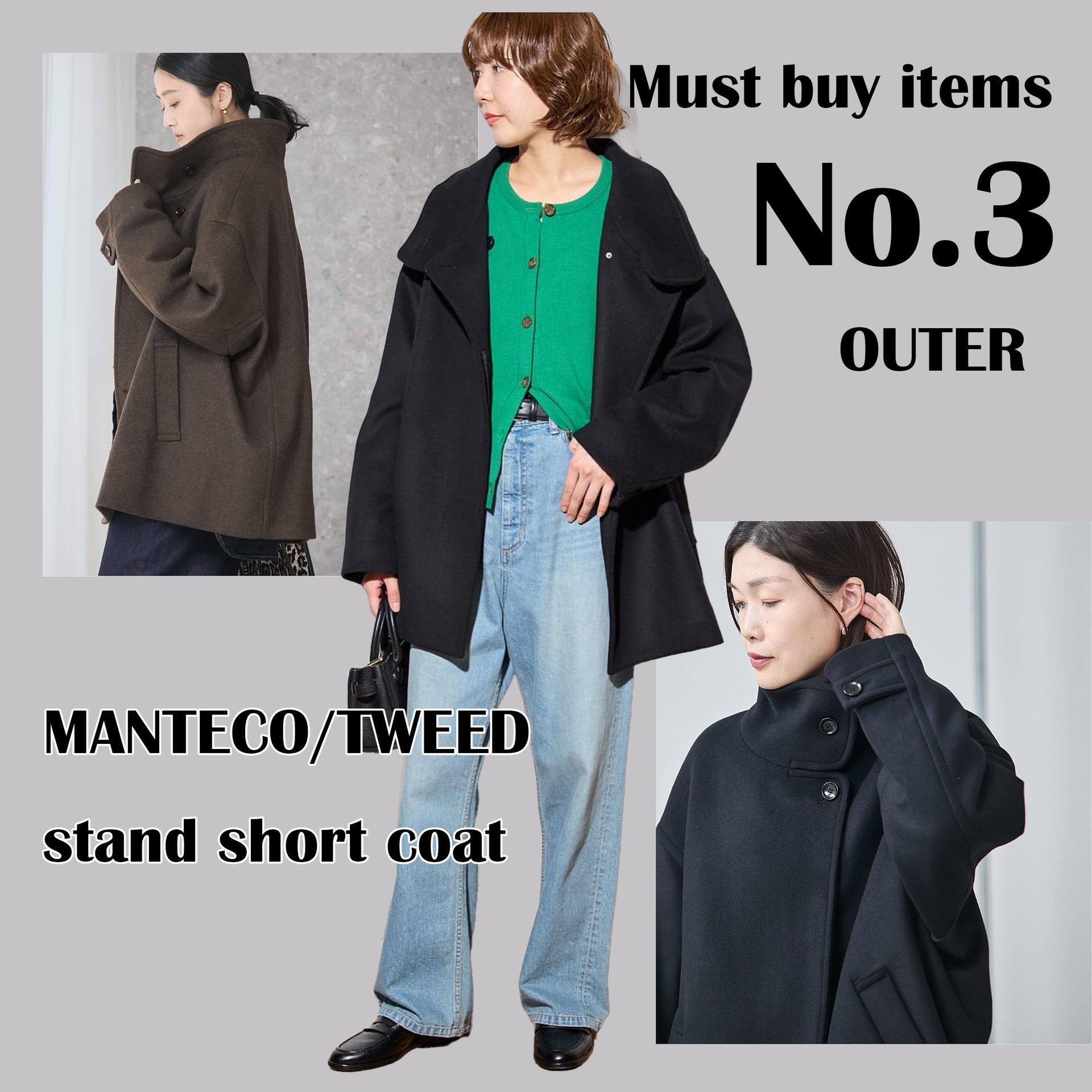 イタリアの高級生地MANTECO社の生地を使用したスタンドカラーコート。肩の落ちたデザインと少しゆったりとしたサイズ感そのままに、顔回りがすっきりみえるバランスのスタンド襟のデザインをアップデート。前を閉じてクラシカルに着こなすのもおすすめ。