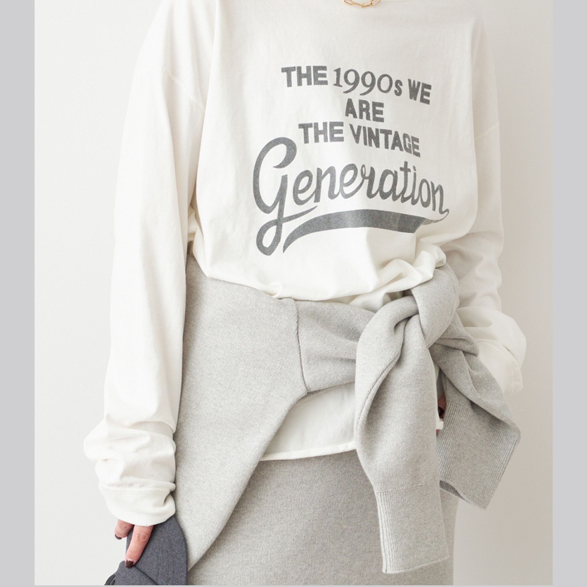 ルーズな袖がニュアンスをつくりラフに着こなす大人の余裕も感じさせる。
