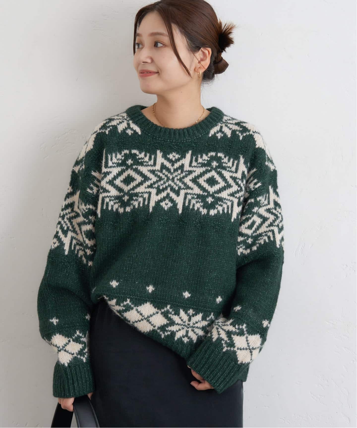 ジャガード編みと地柄編みを組み合わせてつくった、こだわりのニットです。ホリデーシーズンにもぴったりの1枚。