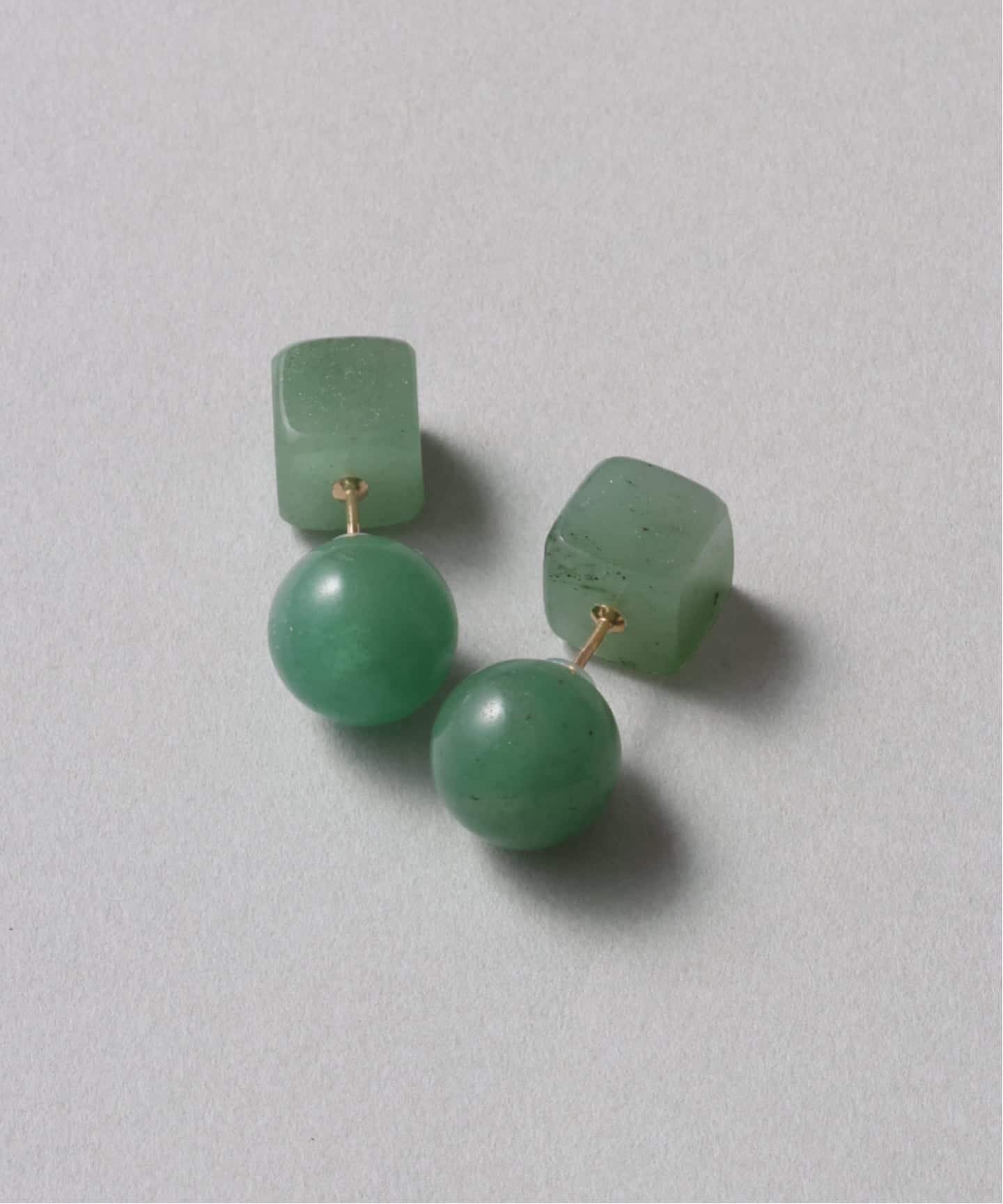 《予約》ラウンド*キューブカラーストーンピアス K10(両耳)