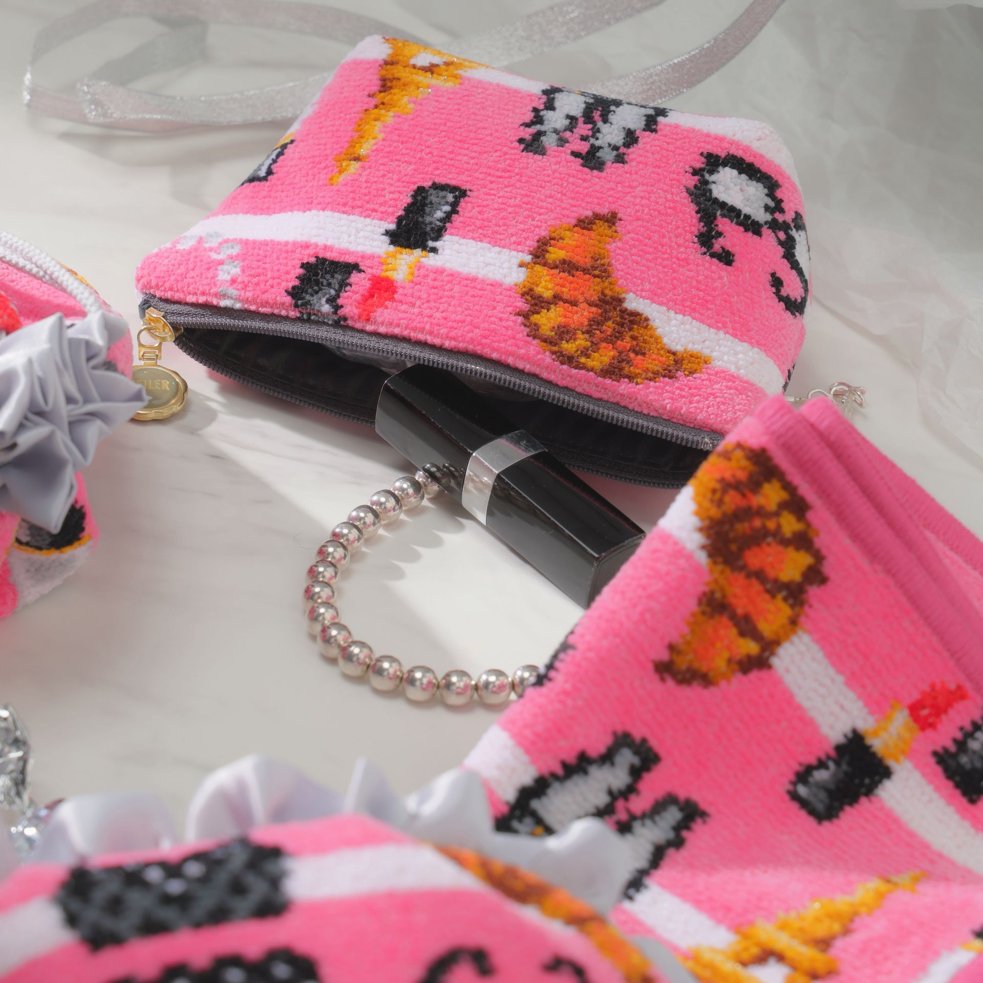 艶やかなピンクに合わせるトリムラインやライニングへは、レッドやシックなグレーを配し、