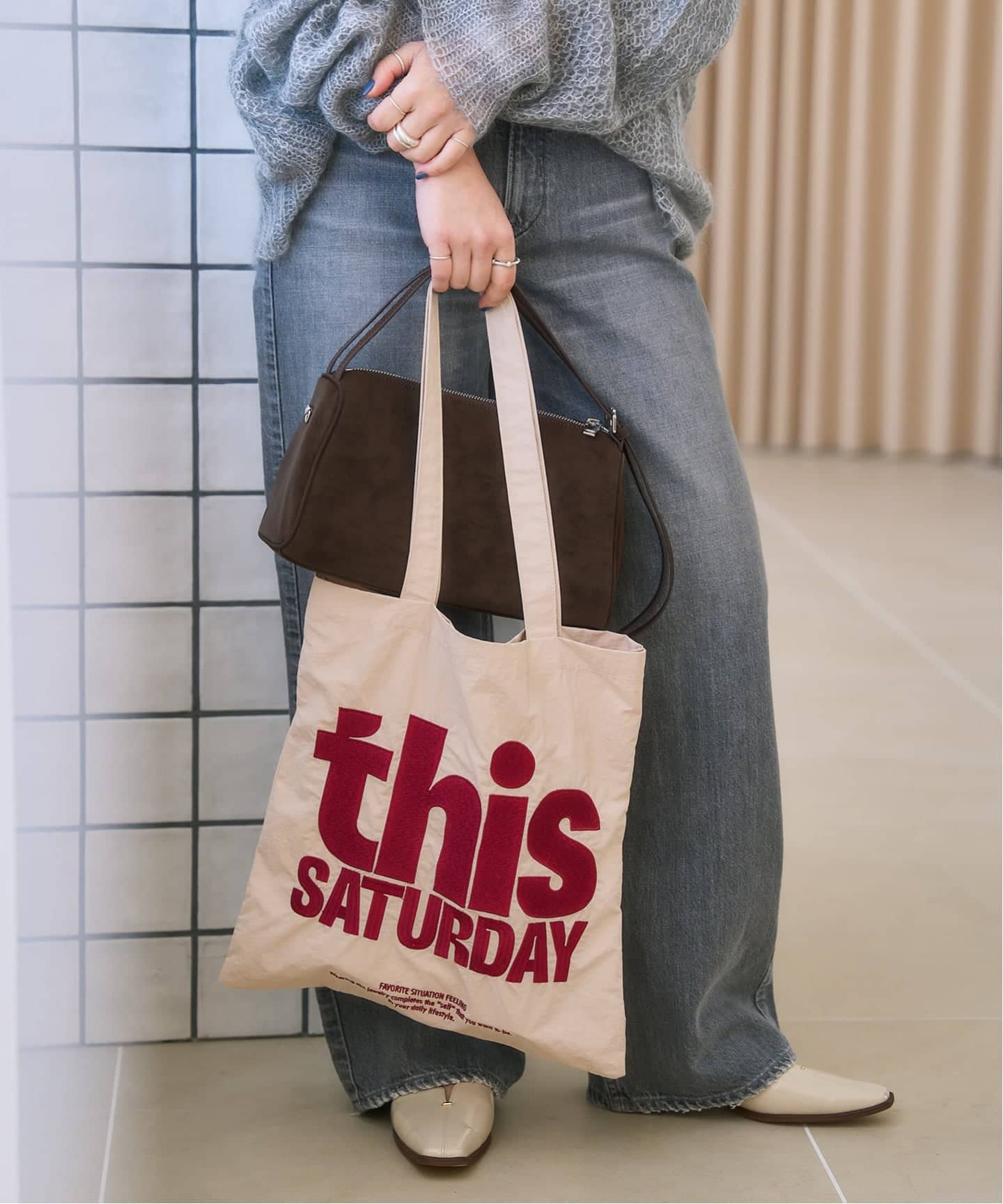 異素材の組み合わせがポイントのミドルサイズのトートバッグ