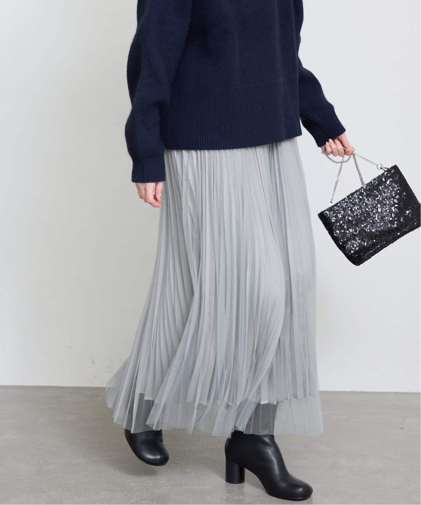 リバーシブルで着用可能で、着回し力抜群なチュールプリーツスカート。
