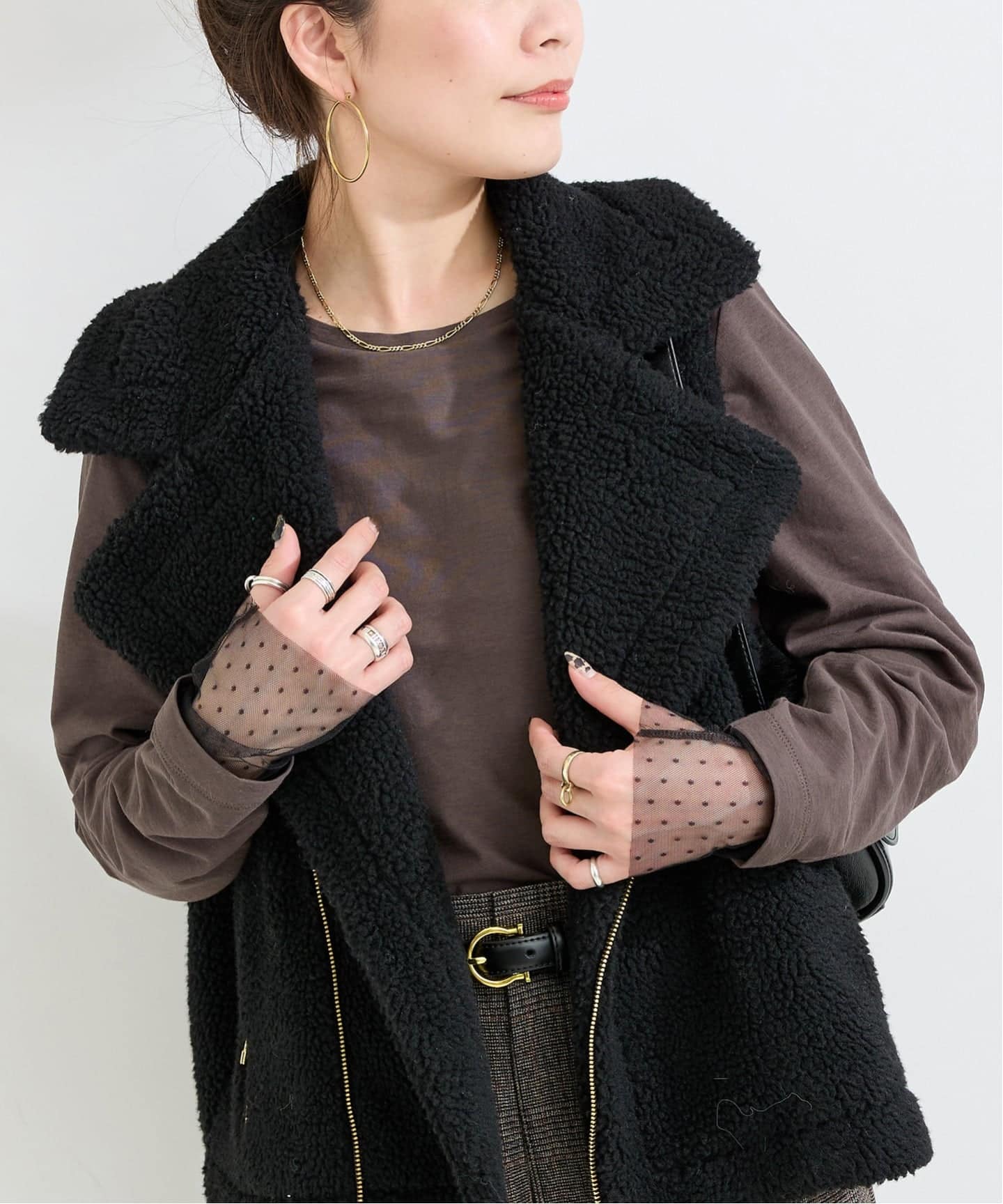身幅のあるシルエットなので、厚手トップスも着込みやすいアウターです。
