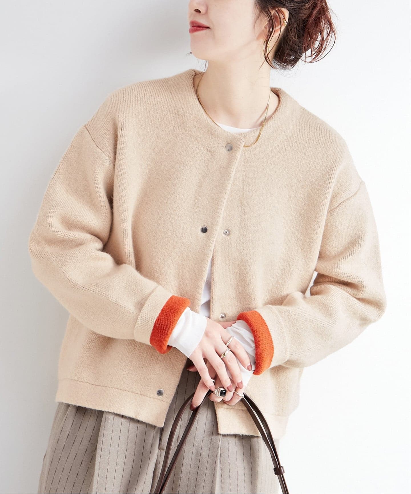 ベーシックカラーから覗くアクセントカラーがポイントになる一枚。