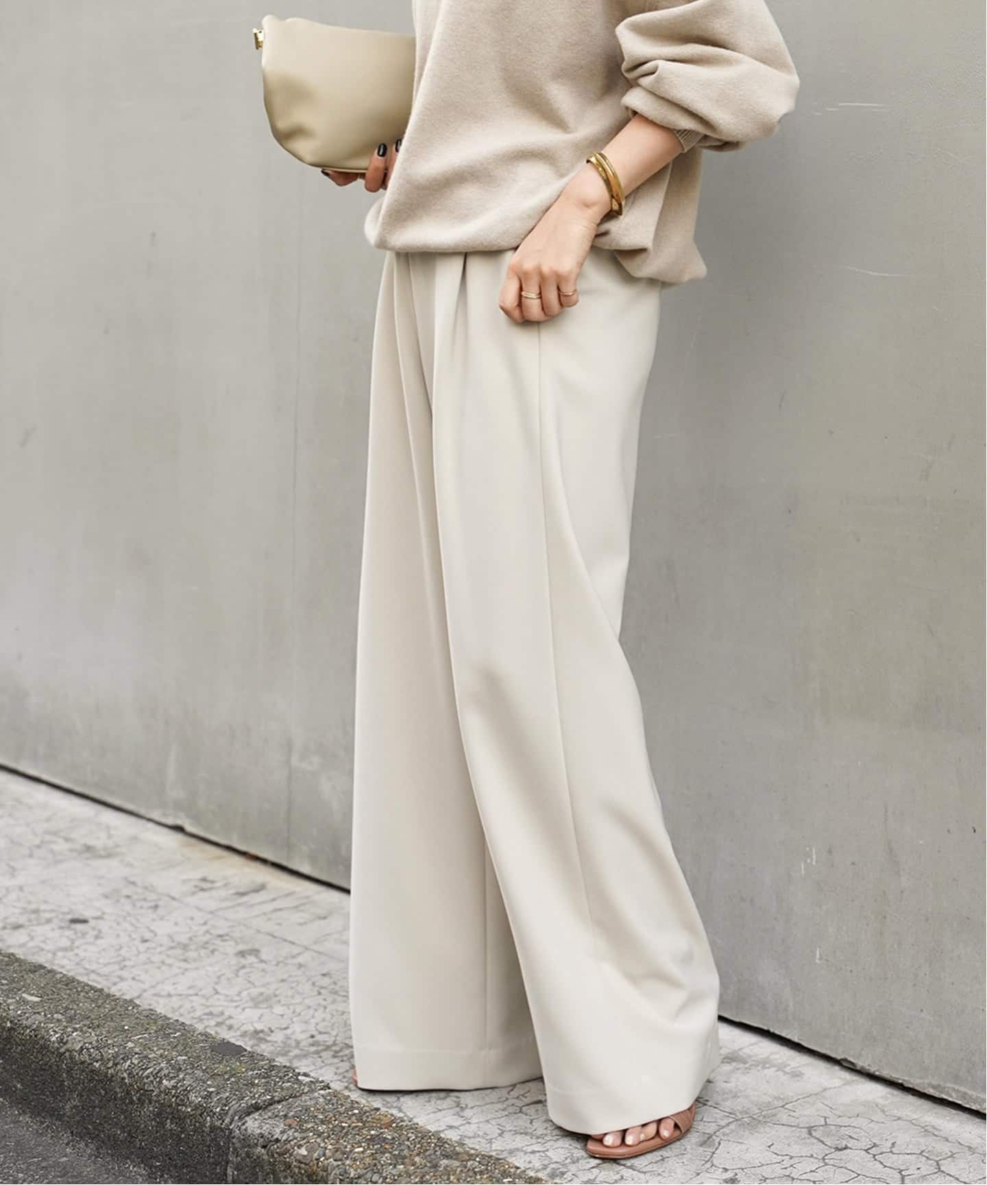 しなやかさと艶を持ち合わせた美しい素材がサッと纏うだけで雰囲気よく決まる。