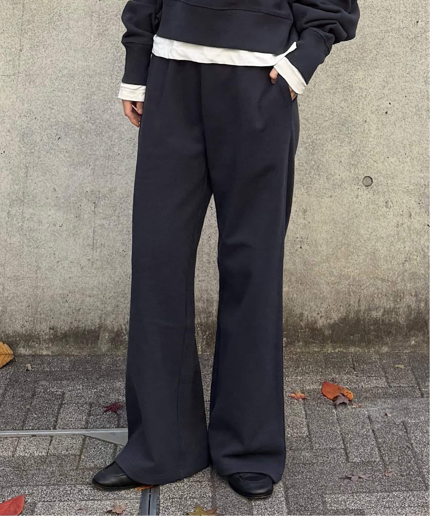 程よいハリのある素材感でスラックスのようなキレイ見えするシルエットが魅力の1着。
