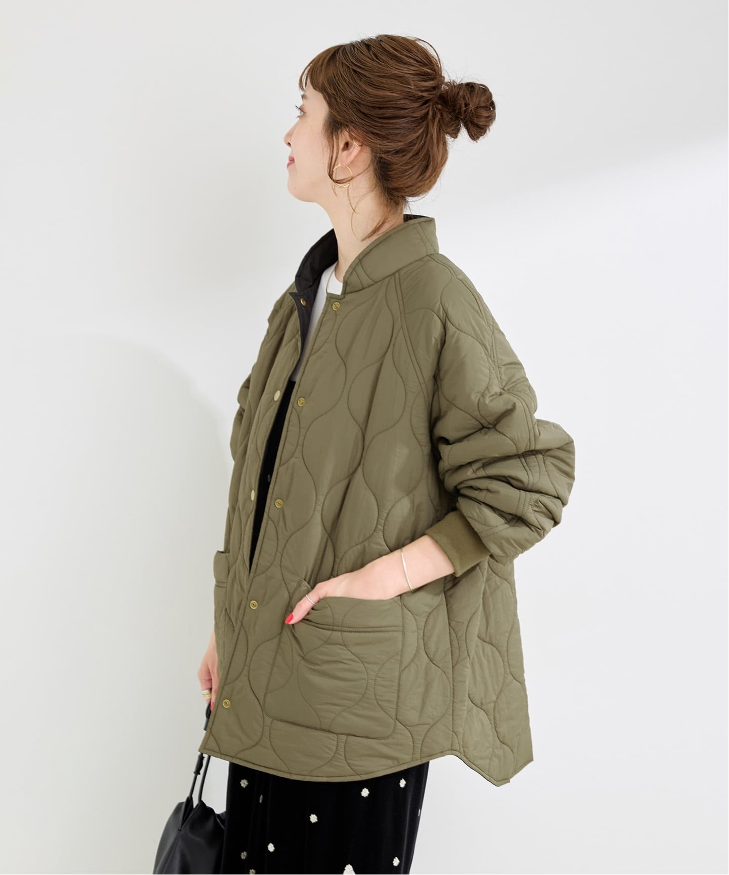 裏表で異なるカラーに設定し、雰囲気を変えて着用できるリバーシブル仕様のキルティングブルゾンです。