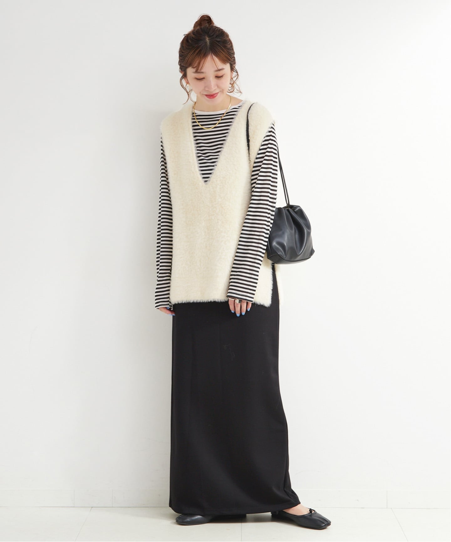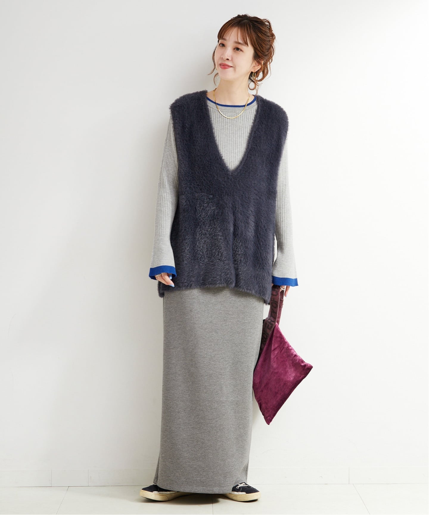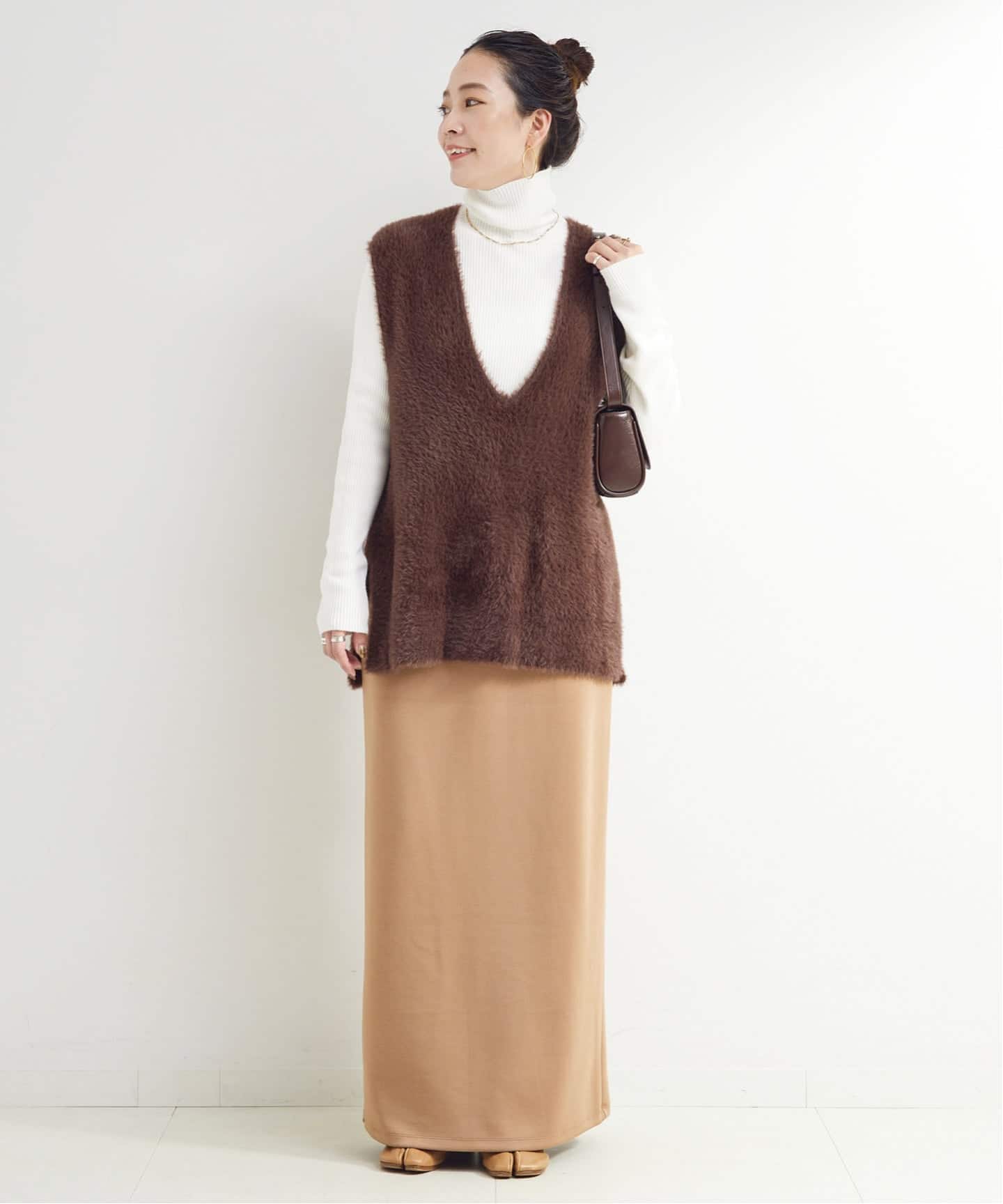ふわっとフェミニンなベスト×スカートの女性らしさのある人気のセットアイテム。