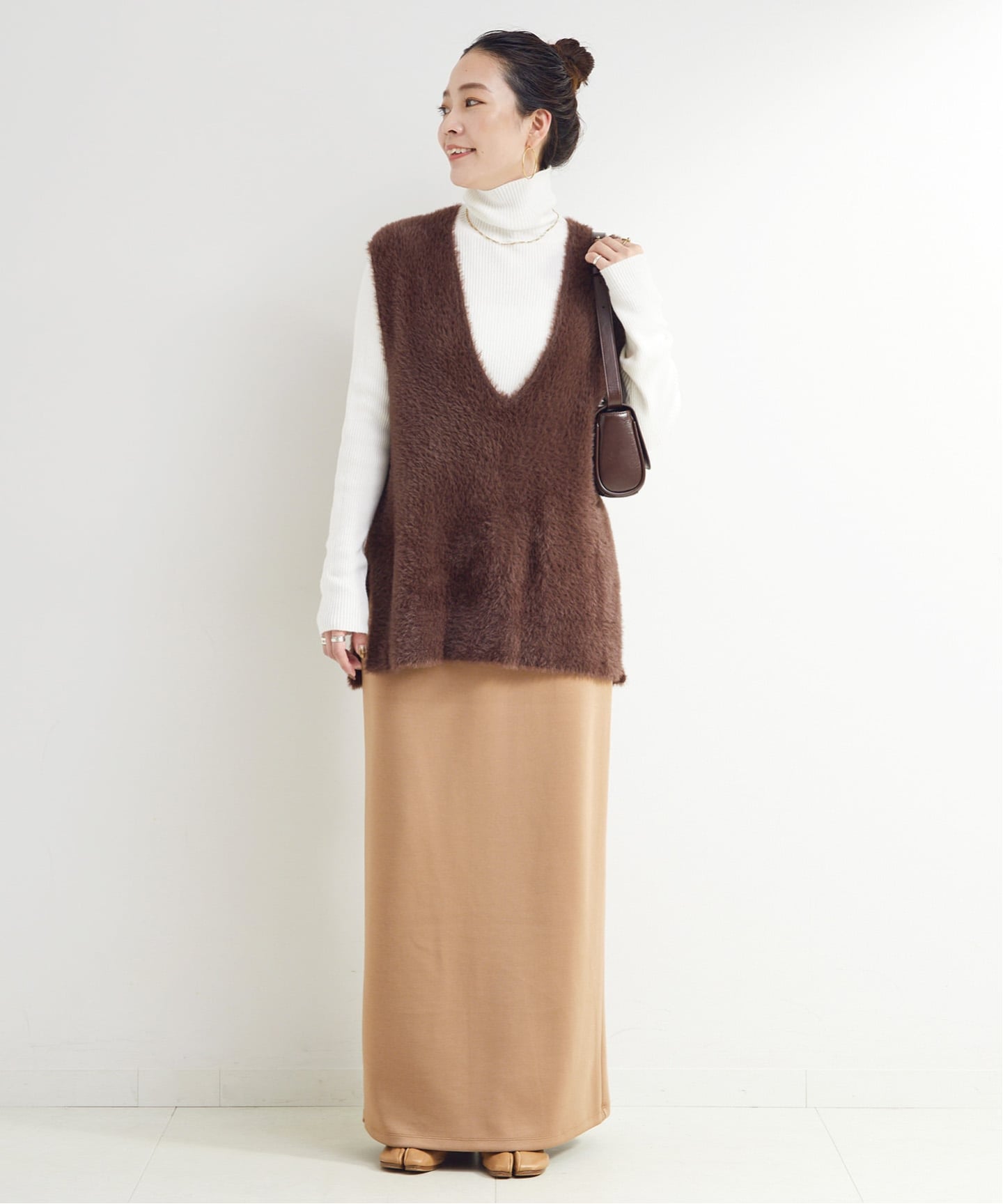 柔らかくて肌触りのよいショートシャギーVネックは、首の開きが広くレイヤードしやすいシルエット。