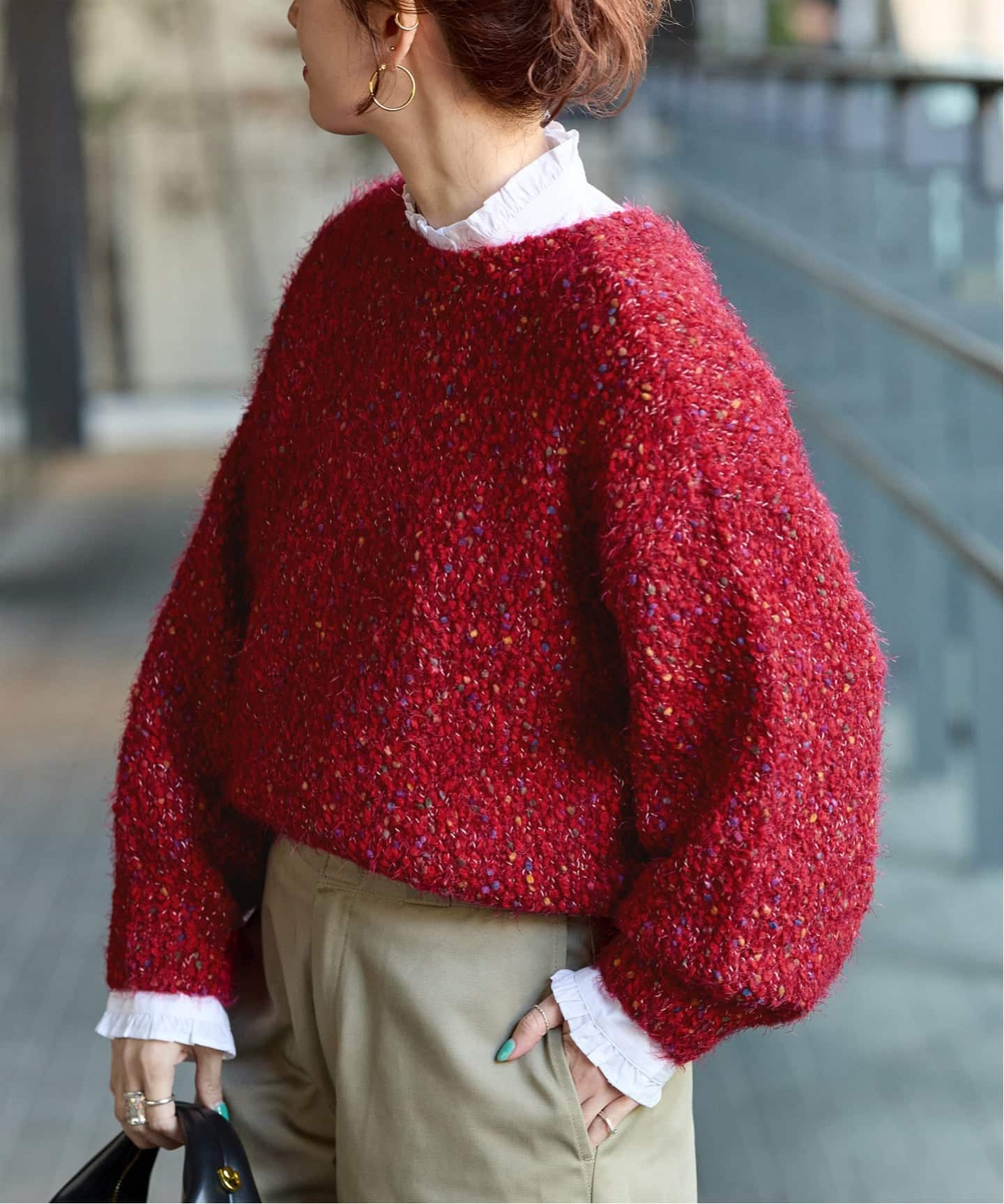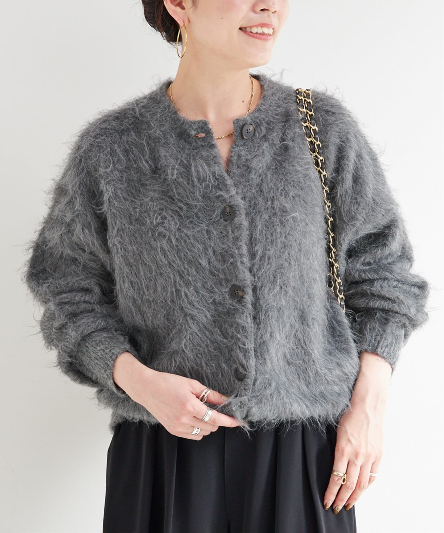 毛足長めのシャギー加工したカーディガンは、シンプルなクルーカーディガンですが、プルオーバーとして2WAYで着用いただくのもおすすめ◎