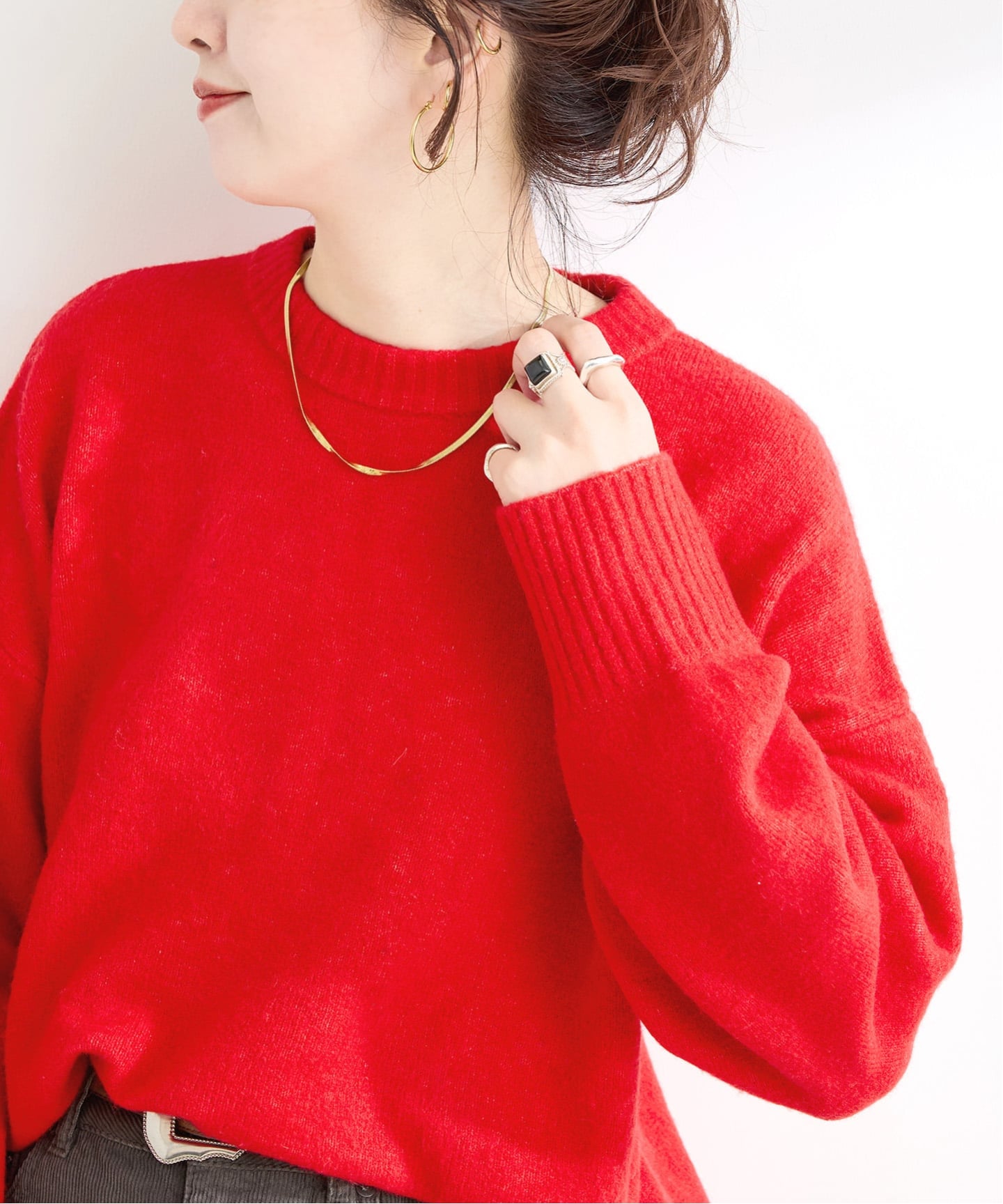定番のクルーネックニットはシンプルながら女性らしいシルエットの一枚。