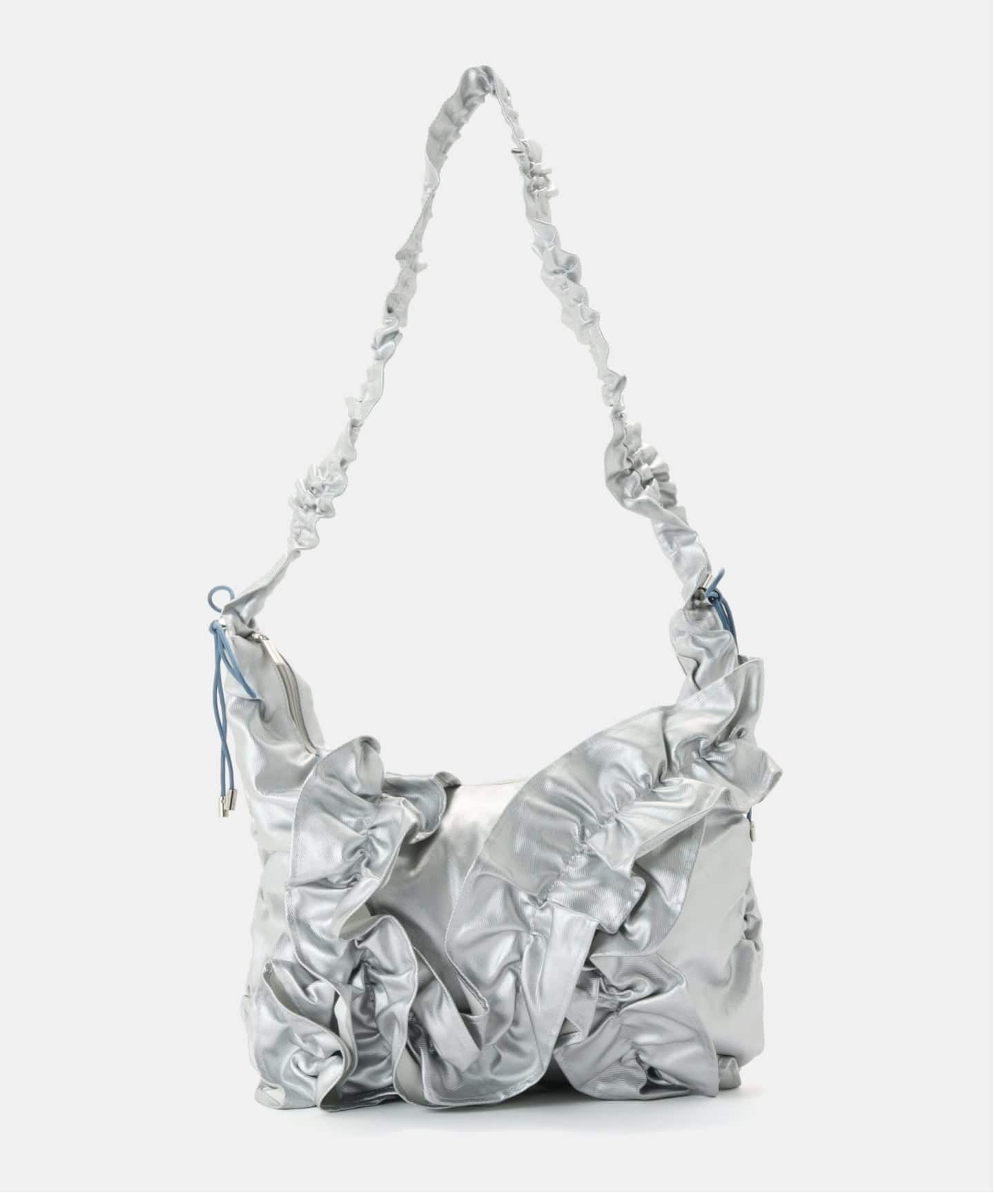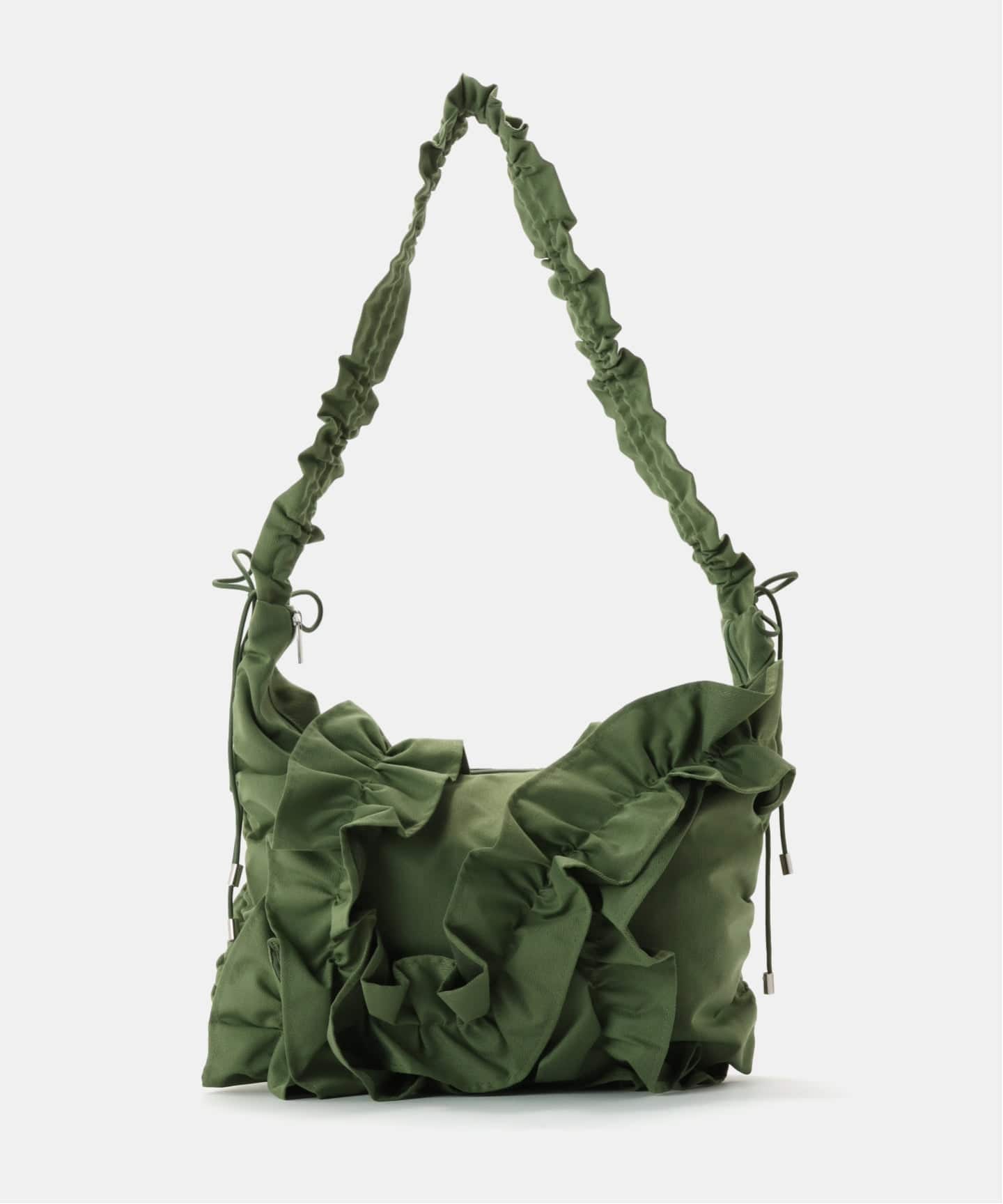 ボリュームたっぷりなフリルを前面にあしらったバッグはコーディネートの主役に。