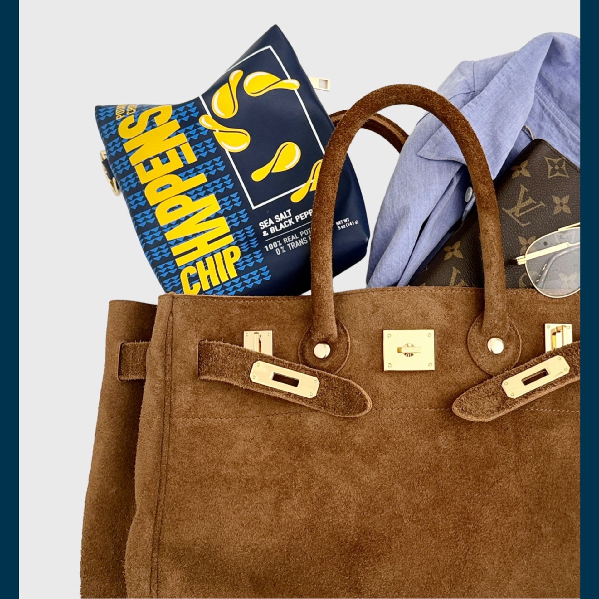 取り出すたびに笑顔になってしまうような、ポテトチップスのパッケージを再現したデザインのポーチ。