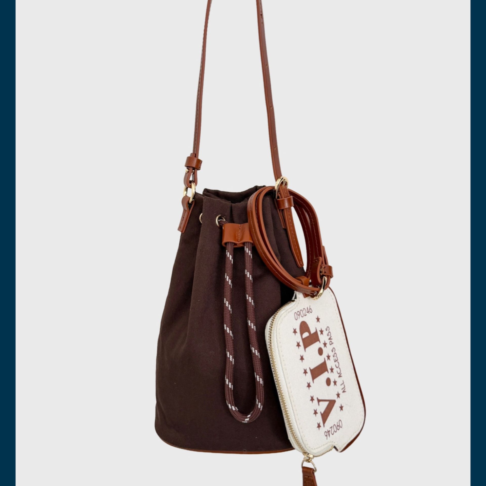 カジュアルなキャンバス素材とコードには、華奢なレザーストラップにすることで洗練された印象に。今シーズン気分のブラウンは持つだけで旬なムードが叶います。
