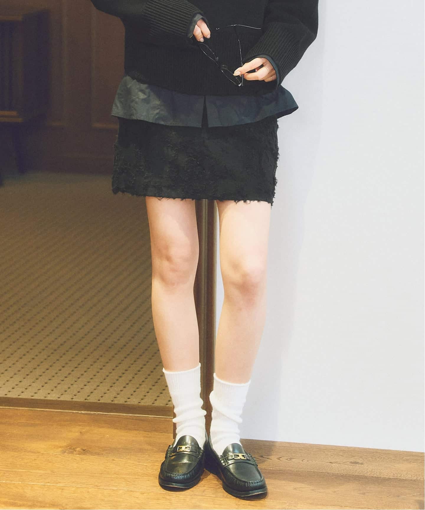 軽やかな存在感を出してくれるジャガード素材のミニスカート。