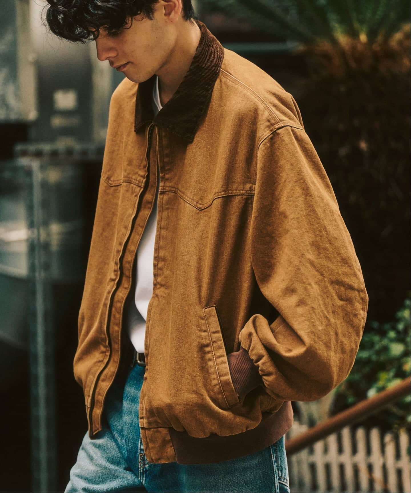 1950年代のテニスジャケットをモディファイした、ボンバージャケットとアイコニックなロゴが目を惹くキャップをスペシャルオーダー。当時の空気感を踏襲しながらも、現代の街着として成立するよう、シルエットと素材選びにアップデートを加えています。