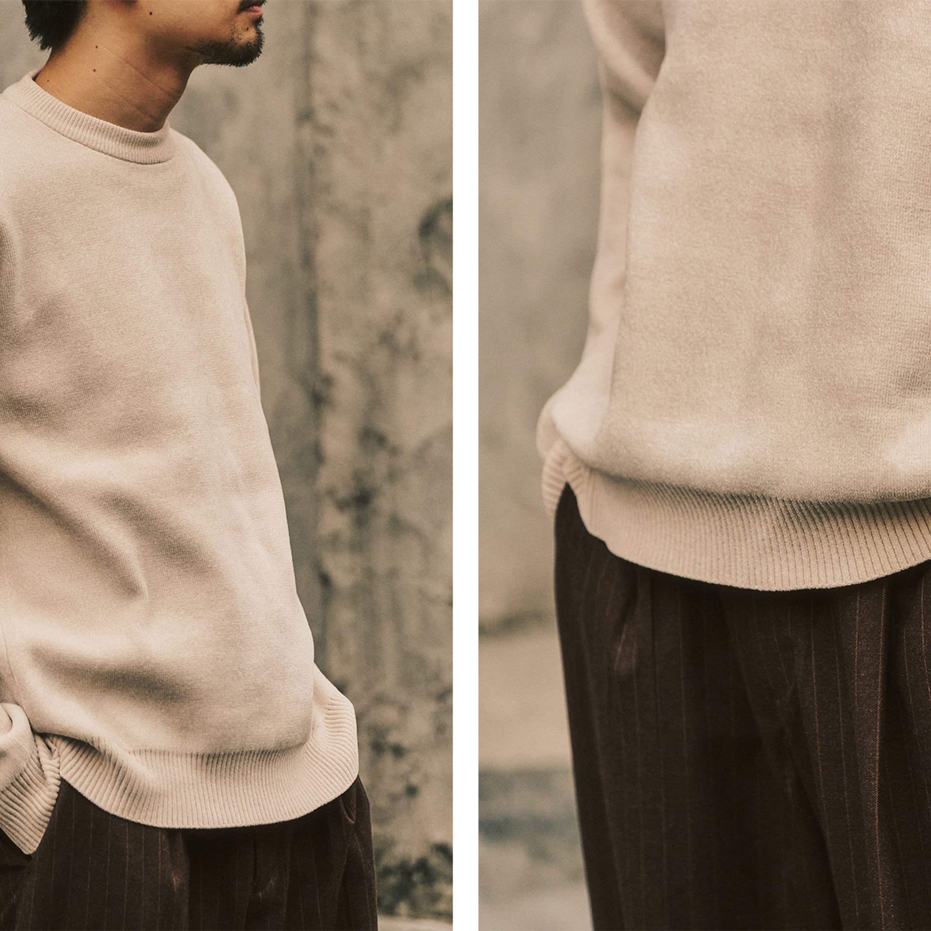 スウェット感覚で気負わず着られるのに、見た目はしっかりニット。そのバランスの良さで、今年もご好評につきカラーを加えて再登場しました。