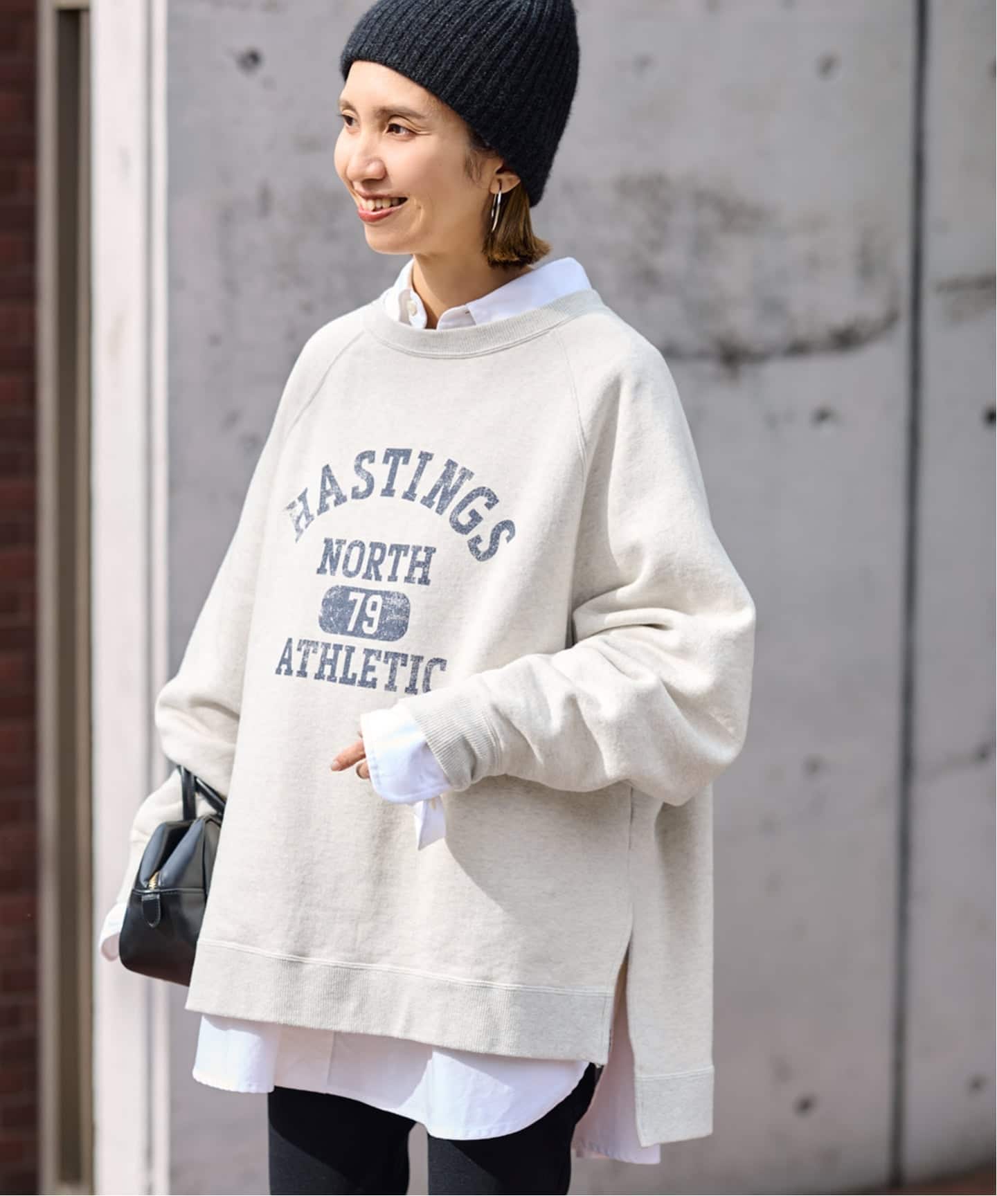 ポンチョのようなゆるっとしたシルエットが魅力のスエット。