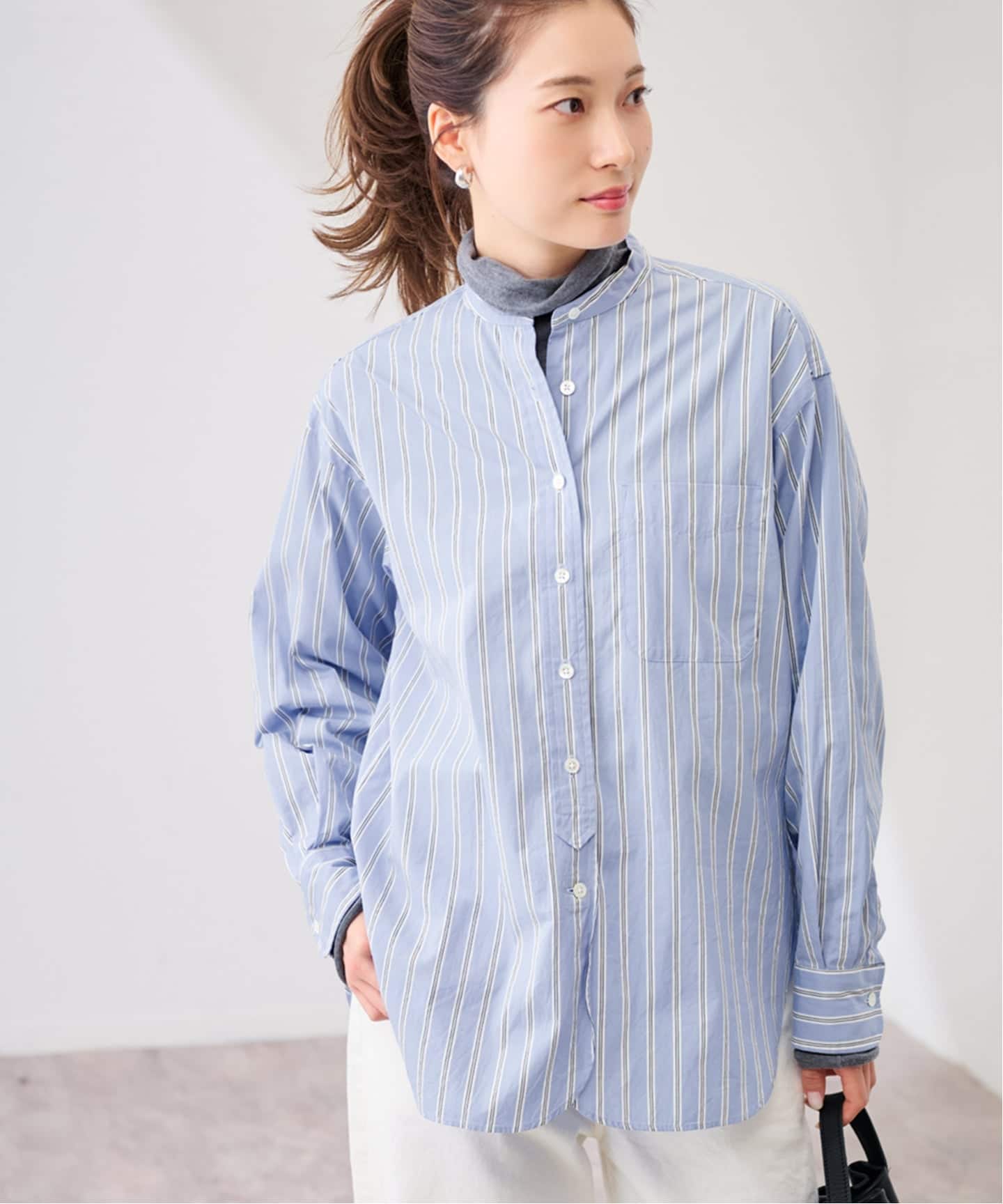 ストライプバンドカラーシャツ