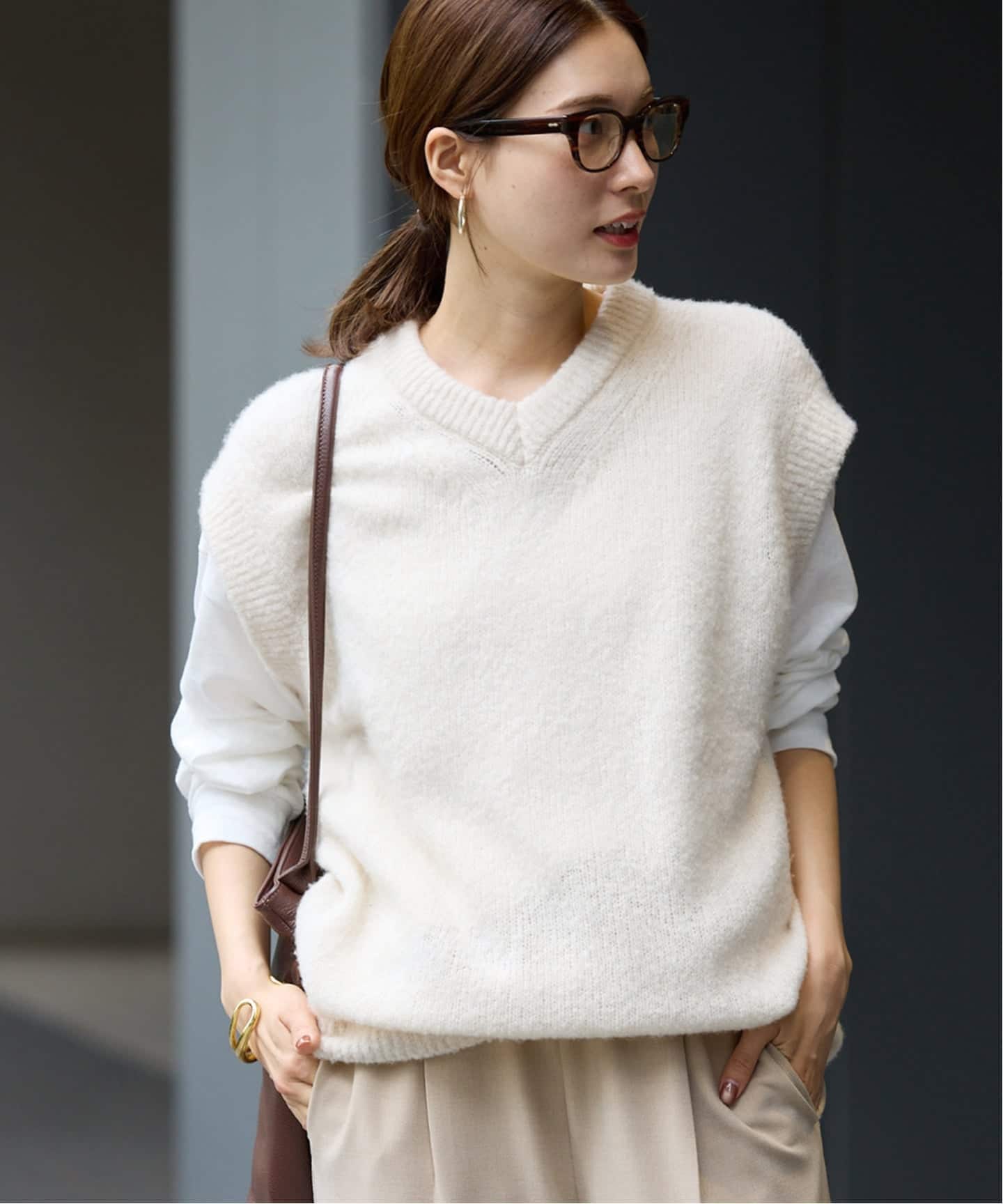 ATON/エイトン WOOL CASHMERE BOUCLE V-NECK VEST