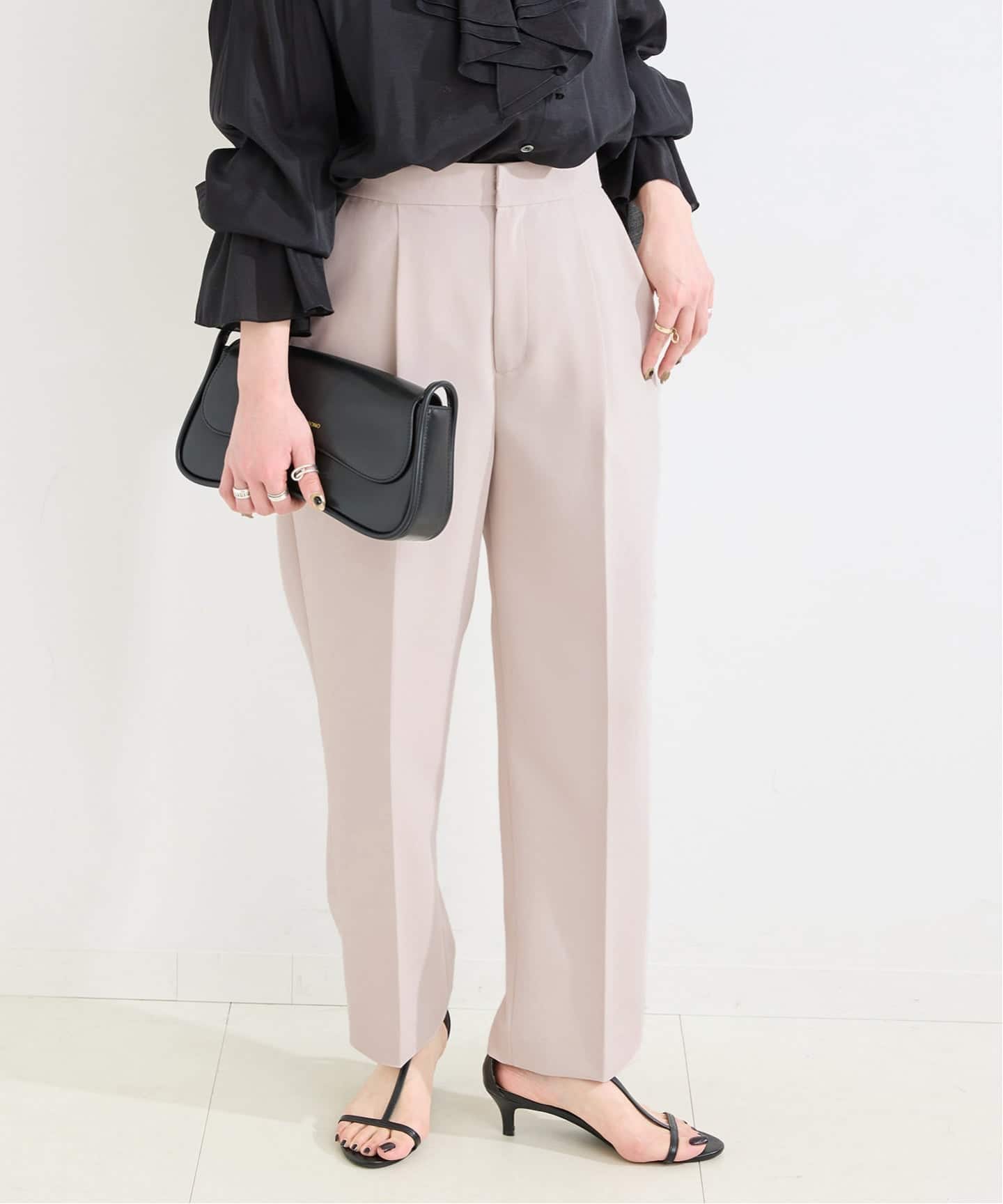 ストレッチ性のあるダブルクロスを使用した綺麗目な表面感で、クセのないすっきりとしたデザインで動きやすさも兼ね備えたパンツです。裾にかけてテーパードさせたすっきりとしたシルエットで、足元はヒールやパンプル、カジュアルにスニーカーで外したコーディネートにも幅広く活躍します。腰周りをカバーするワンタック仕様で、前ウエストはフラットにして部分的に後ろゴム仕様にしたフィット感のある穿き心地に仕上げています。