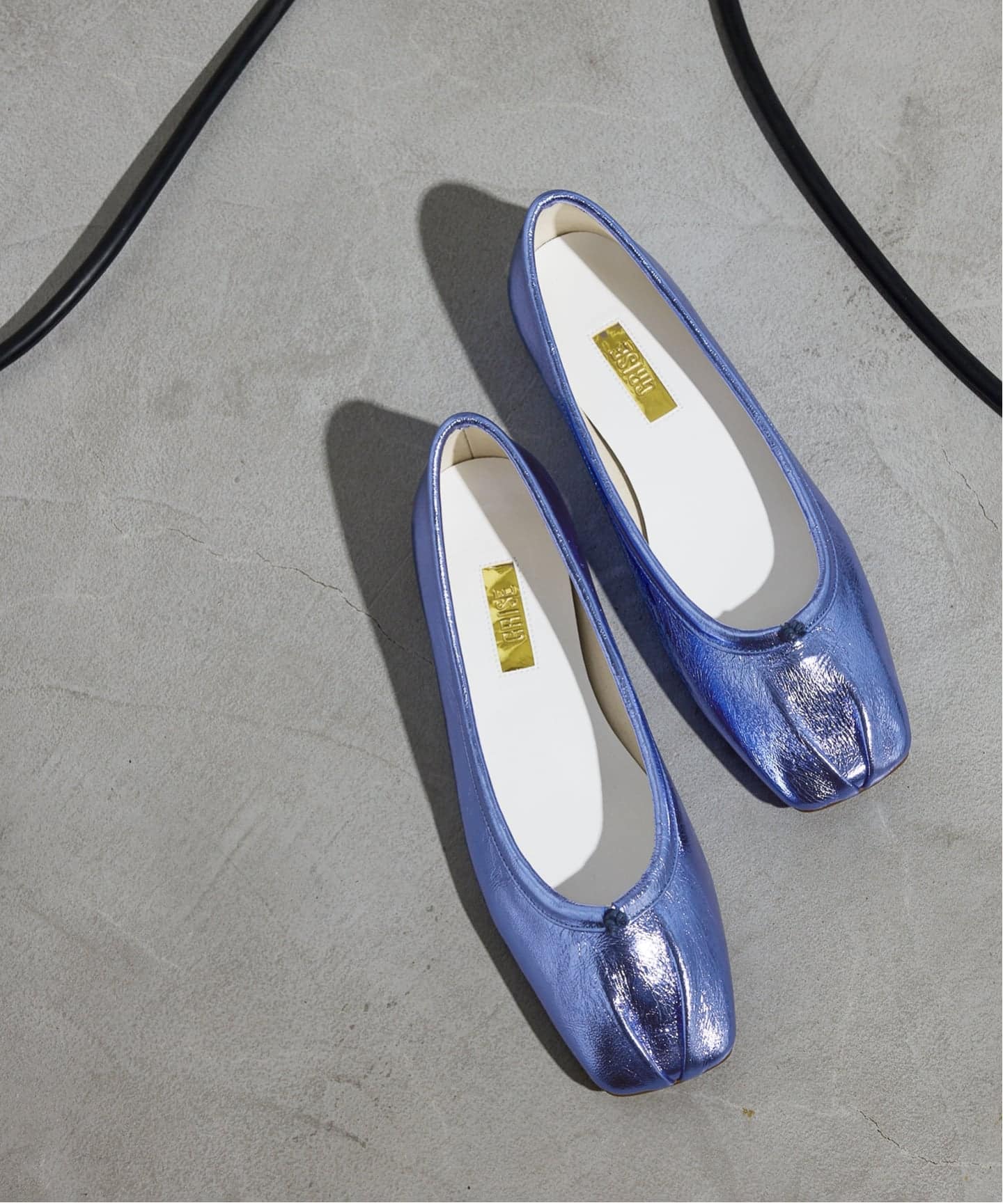 トウ先に1足1足手作業でプリーツを施したフラットシューズ。