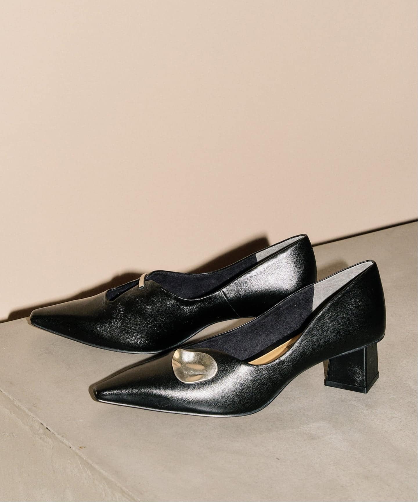 アートやオブジェからインスピレーション受けた、左右非対称なデザインのパンプス。他にはないデザインでモードな足元を演出してくれます。