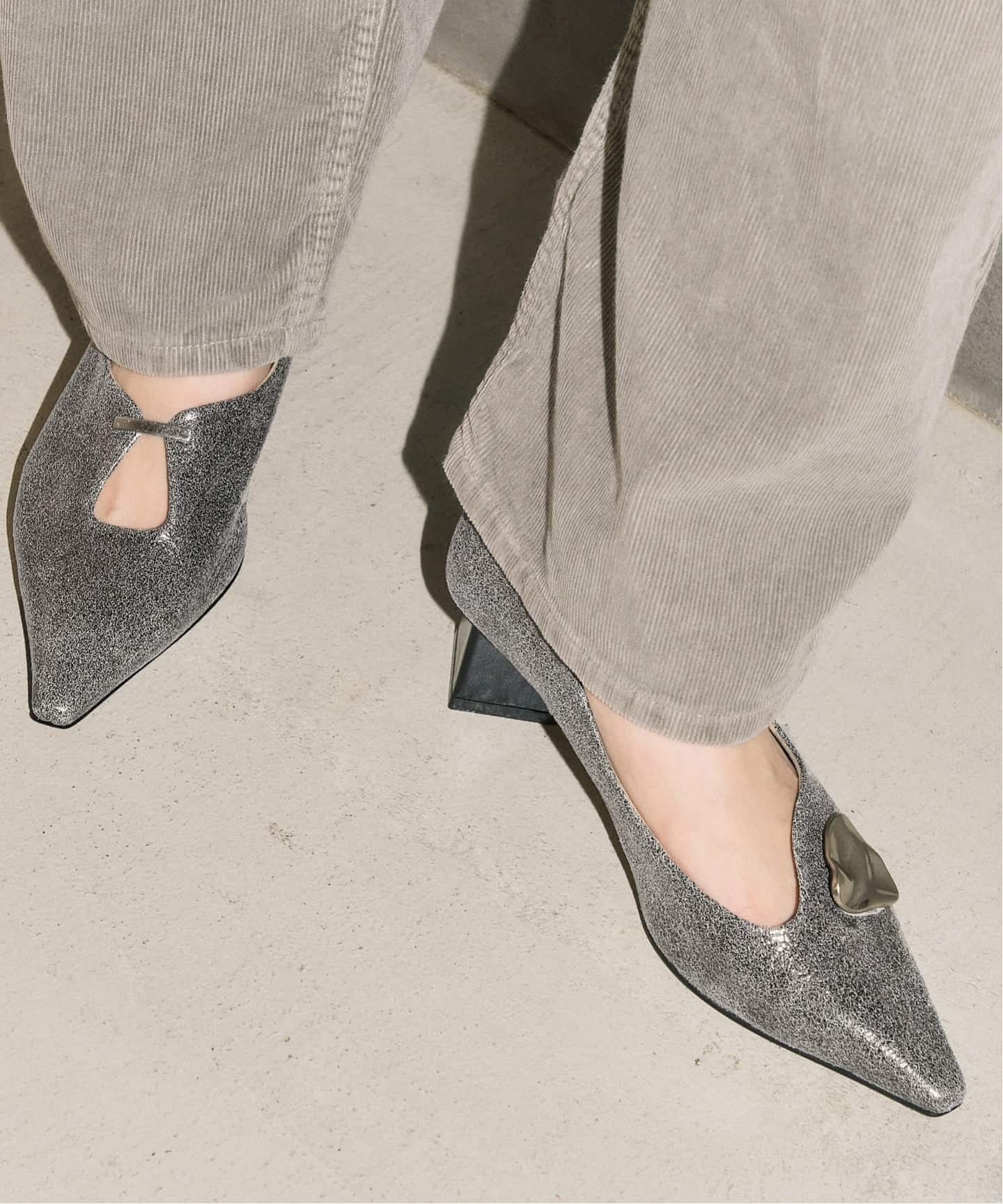 人気のパンプスに春の足元に映えるクラッキング加工のシルバーが登場!