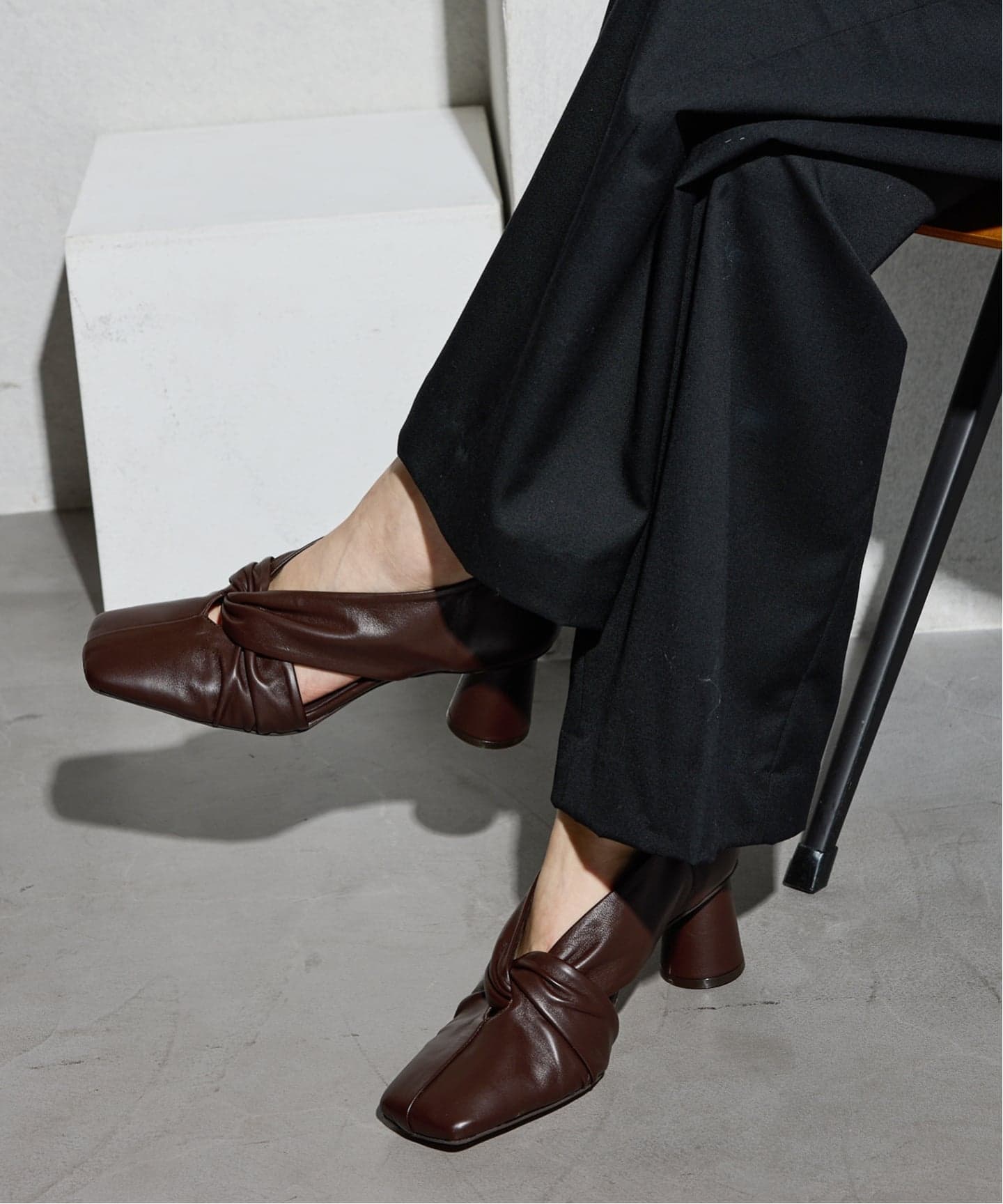|GRISE6cmレザースクエアツイストパンプス