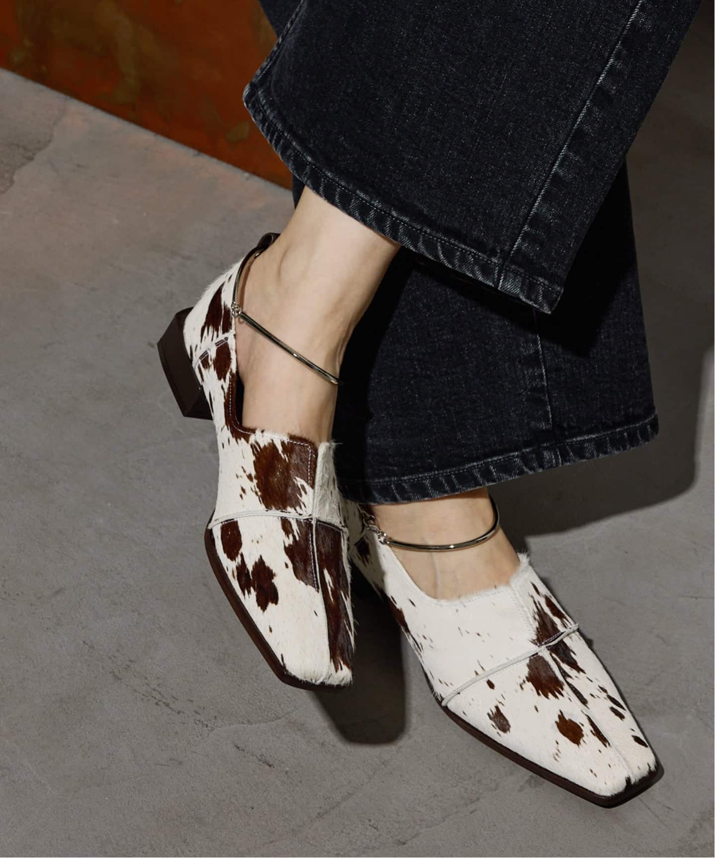 こちらも大人気アイテムに、足元が新鮮になるヘアカーフのホルスタイン柄が登場!甲が深いデザインで寒い時期から取り入れやすいのも◎