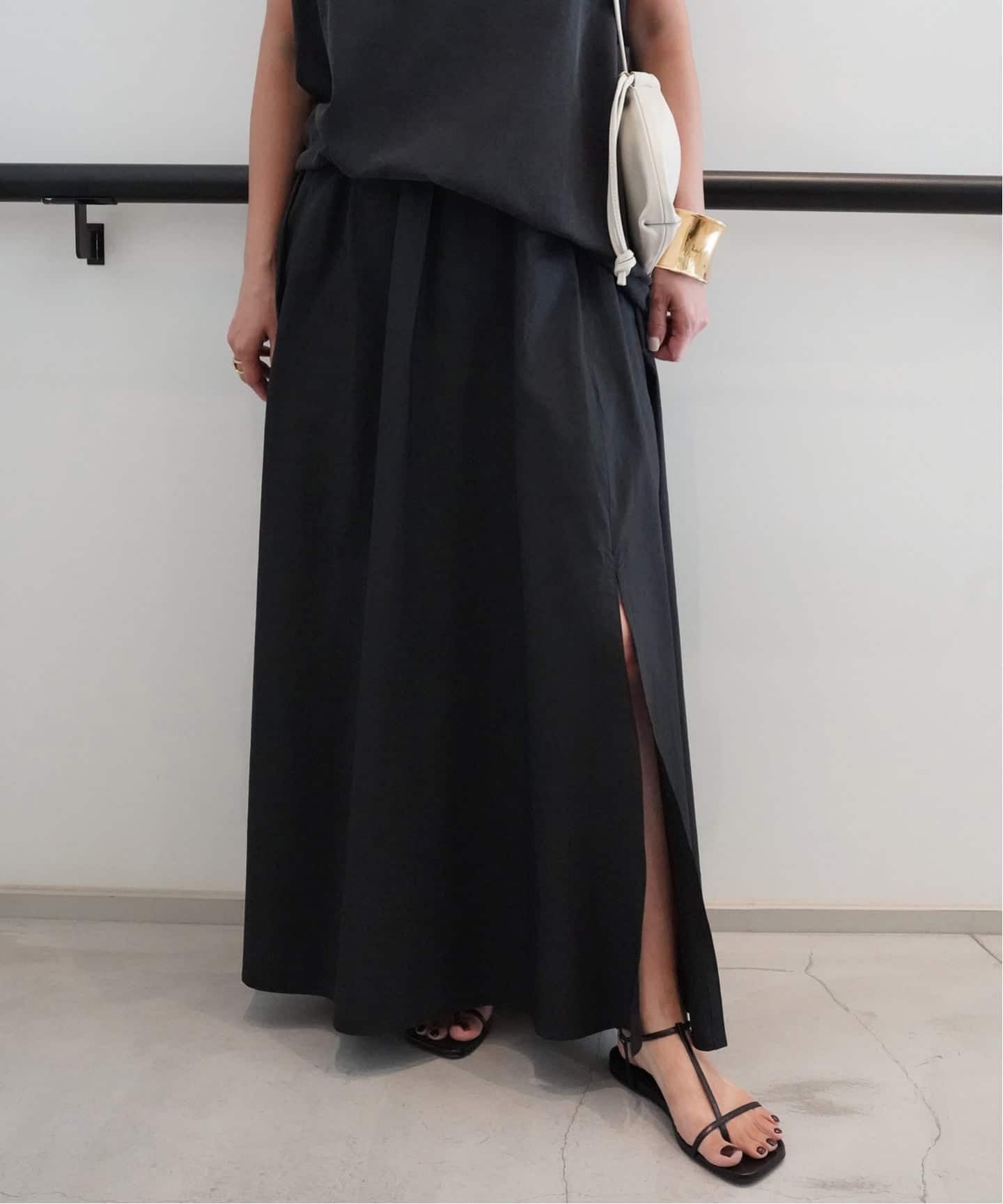 ボリュームがありながらも潔く開いたスリットが雰囲気を増す。