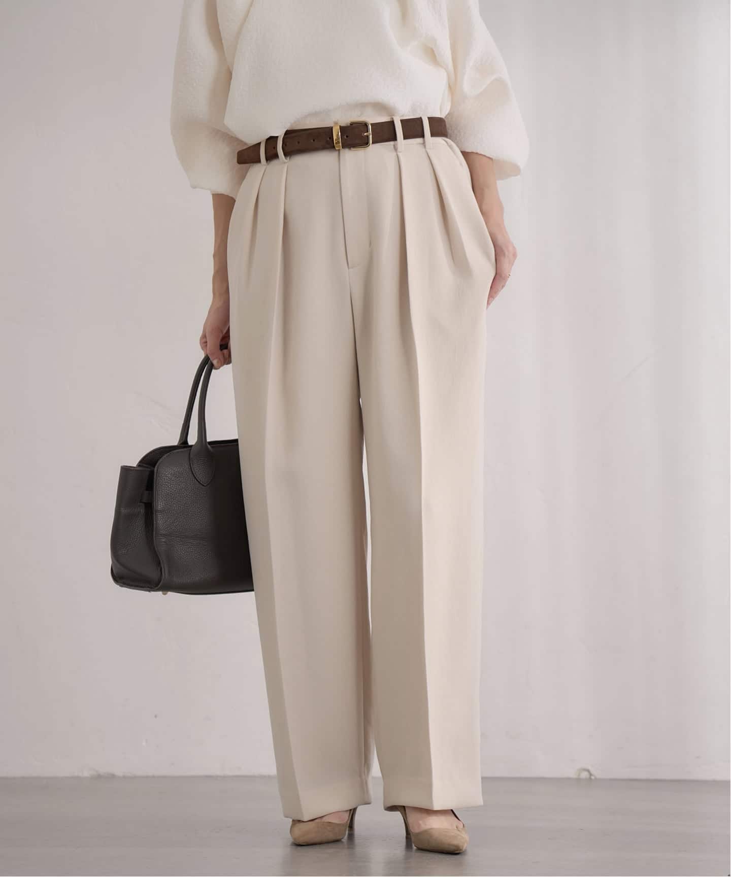 インポートライクな高級感が際立つツイード素材を使用したストレートパンツ。