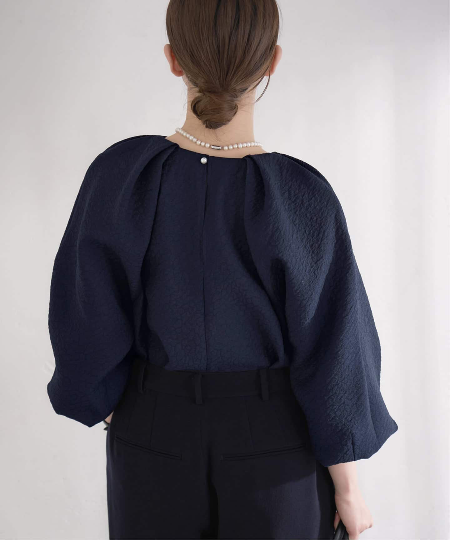 05.&NAVY オーガンジージャガードタックブラウス