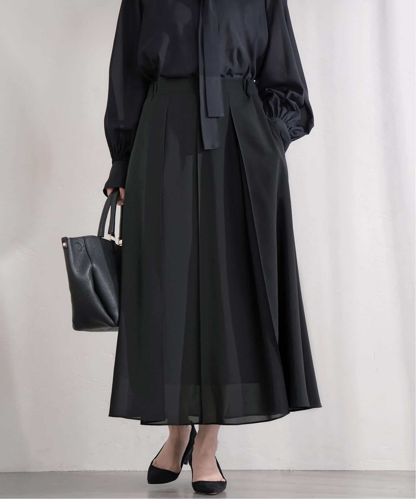 《予約》&NAVY 撥水シアーピンタックスカート