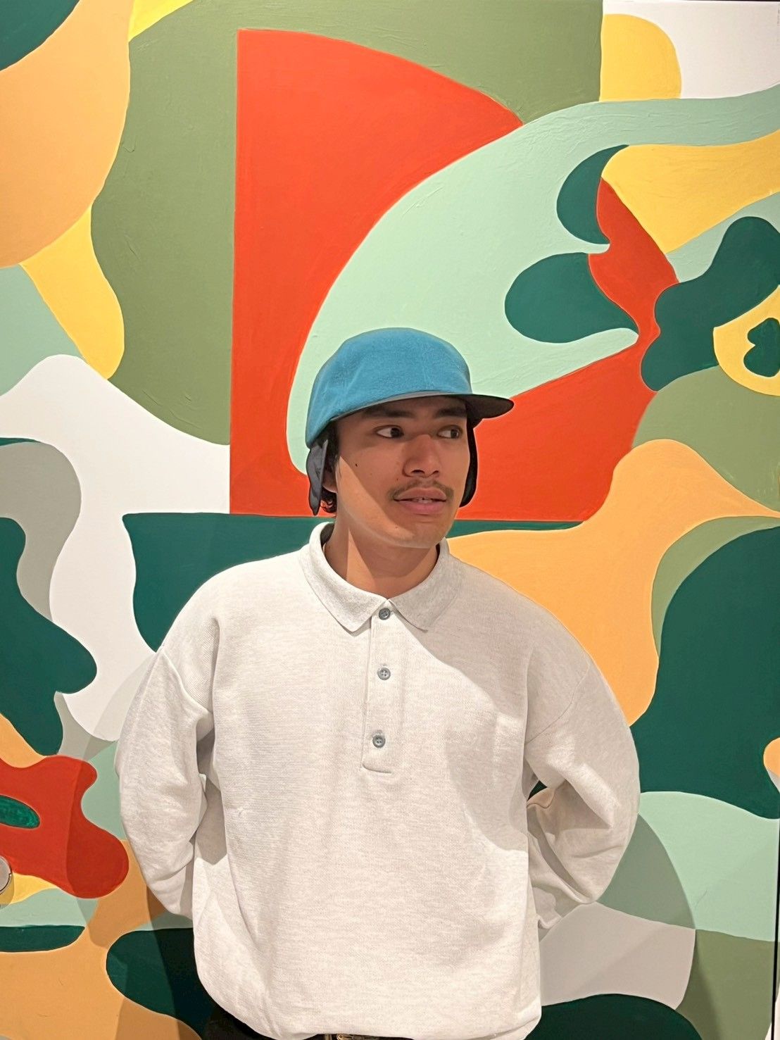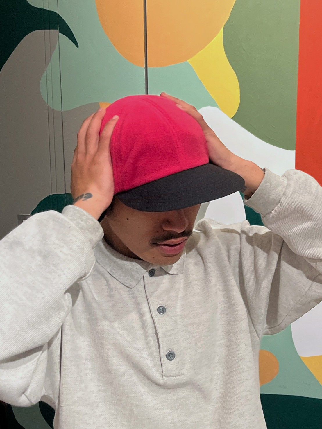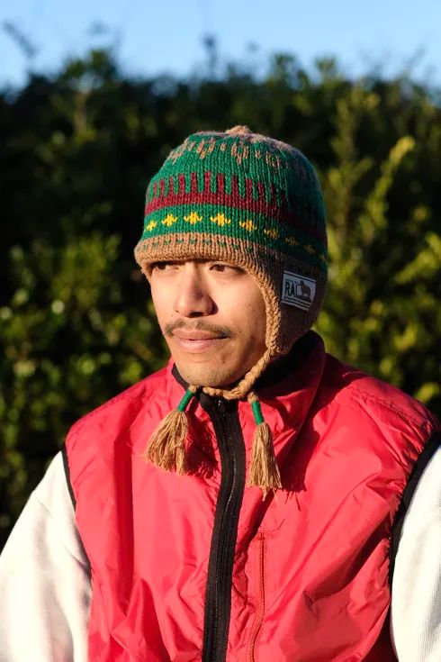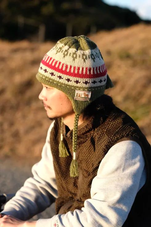 RALのメリノウールカーディガンと同じカラーリングで仕立てたニット帽。