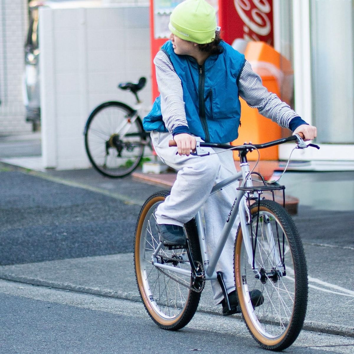 シルエットは至極シンプルに。ライドでも着れるし、そのまま街にだって着て行けるような良い塩梅。気分転換に表裏を裏返してOcta®︎側を外にして着ると、フワフワした生地の表情のおかげでまた違った着こなしも楽しめます。ポケットに手を突っ込むと暖かくなるというおまけ付き。