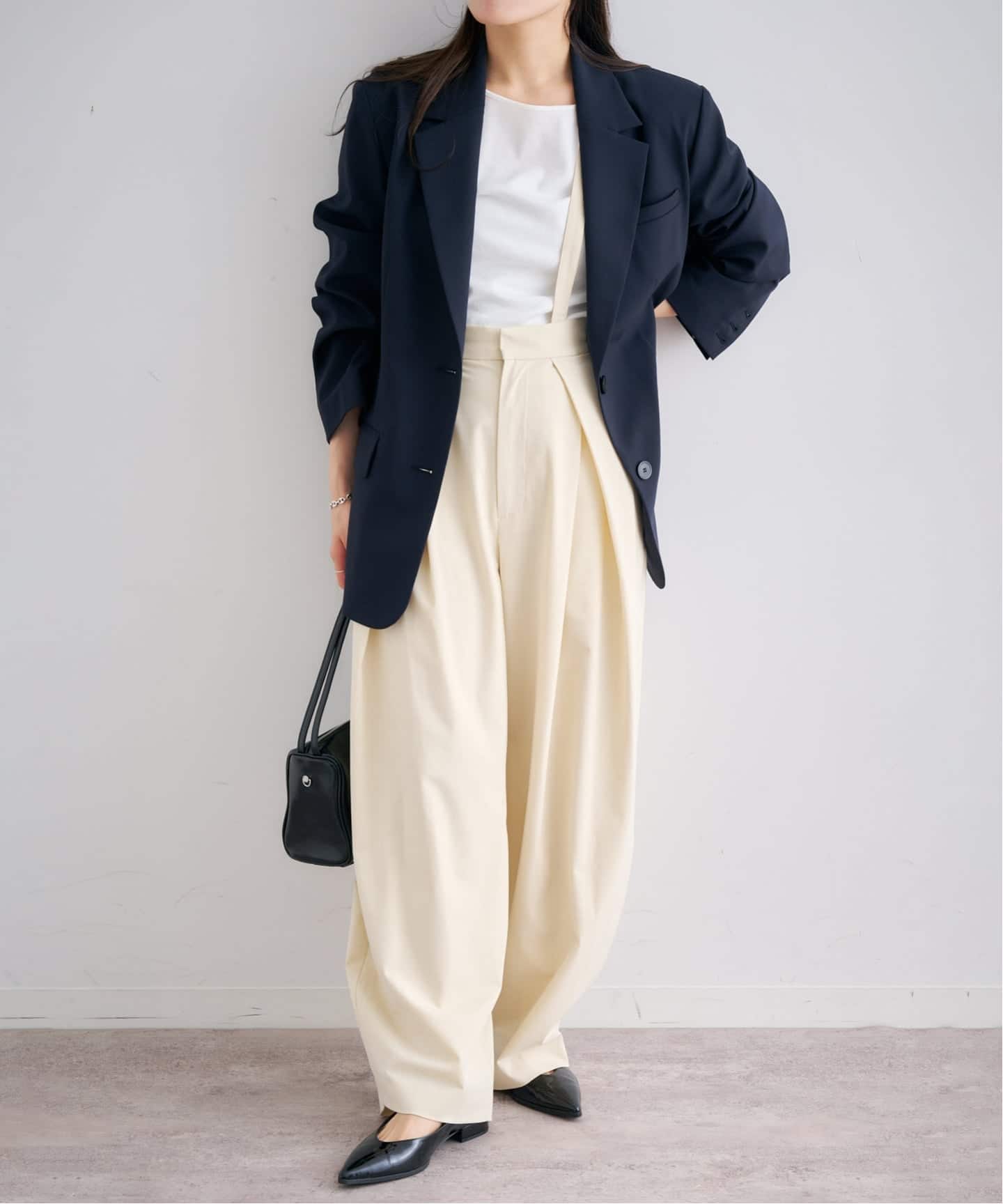 マニッシュさもありながら、程よいハリとしなやかな落ち感のある素材が女性らしさも演出する1本。